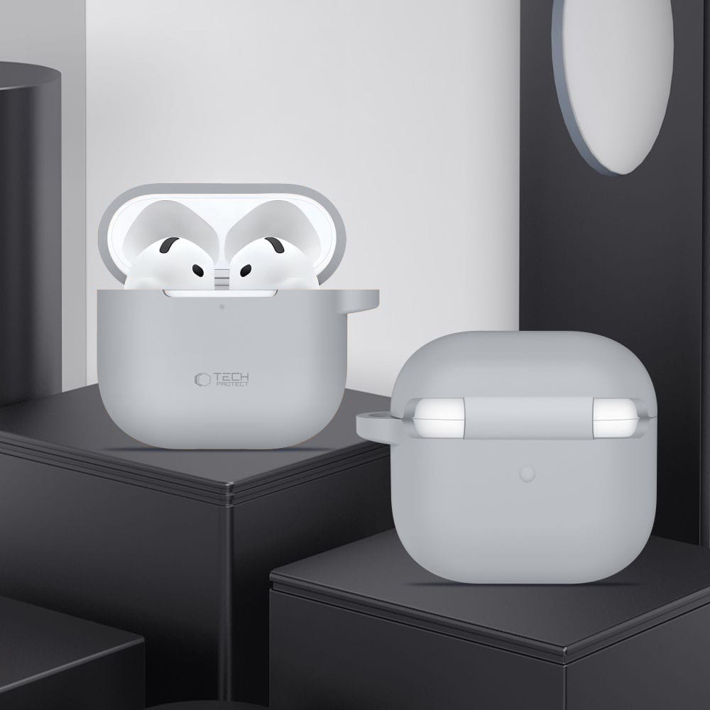 Etui Tech-Protect Silicone Hook do Apple AirPods 4, szare