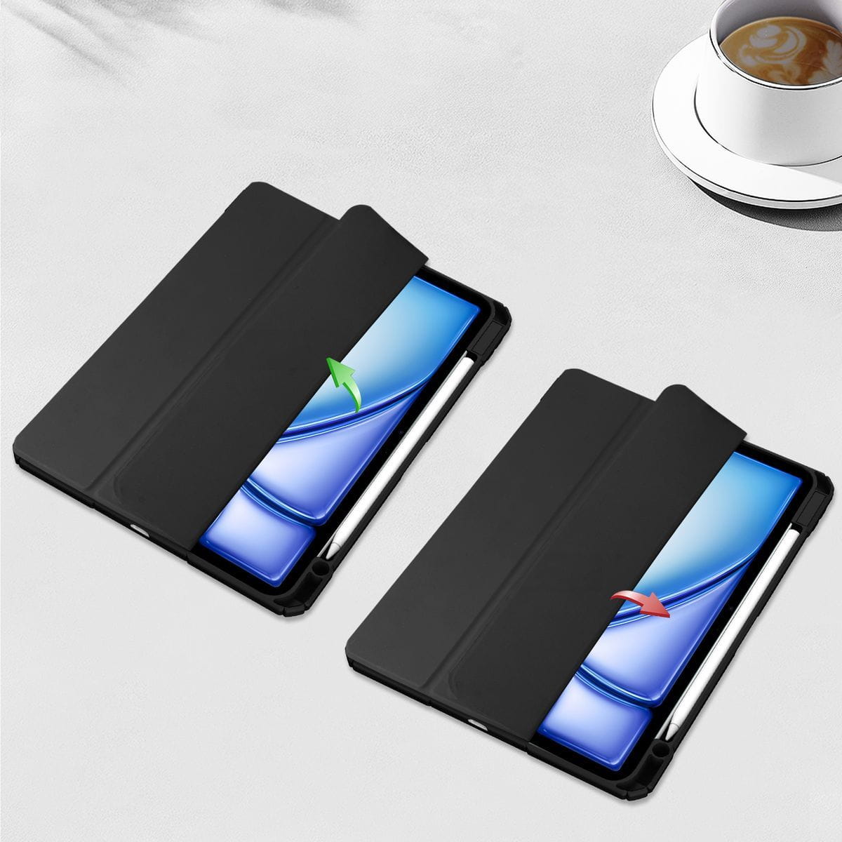Tablet nie człowiek, skąd ma wiedzieć, kiedy się położyć i wstać? Dzięki funkcji automatycznego wybudzania i usypiania*! Uniesienie klapki aktywuje urządzenie, a zamknięcie - powie mu “dobranoc”.