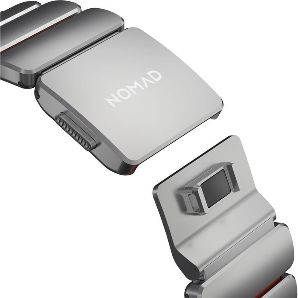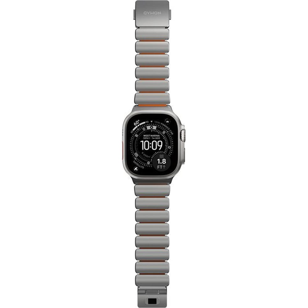 Pasek Nomad Stratos Band do Apple Watch 49/46/45/44 mm, srebrny tytan z pomarańczowym akcentem