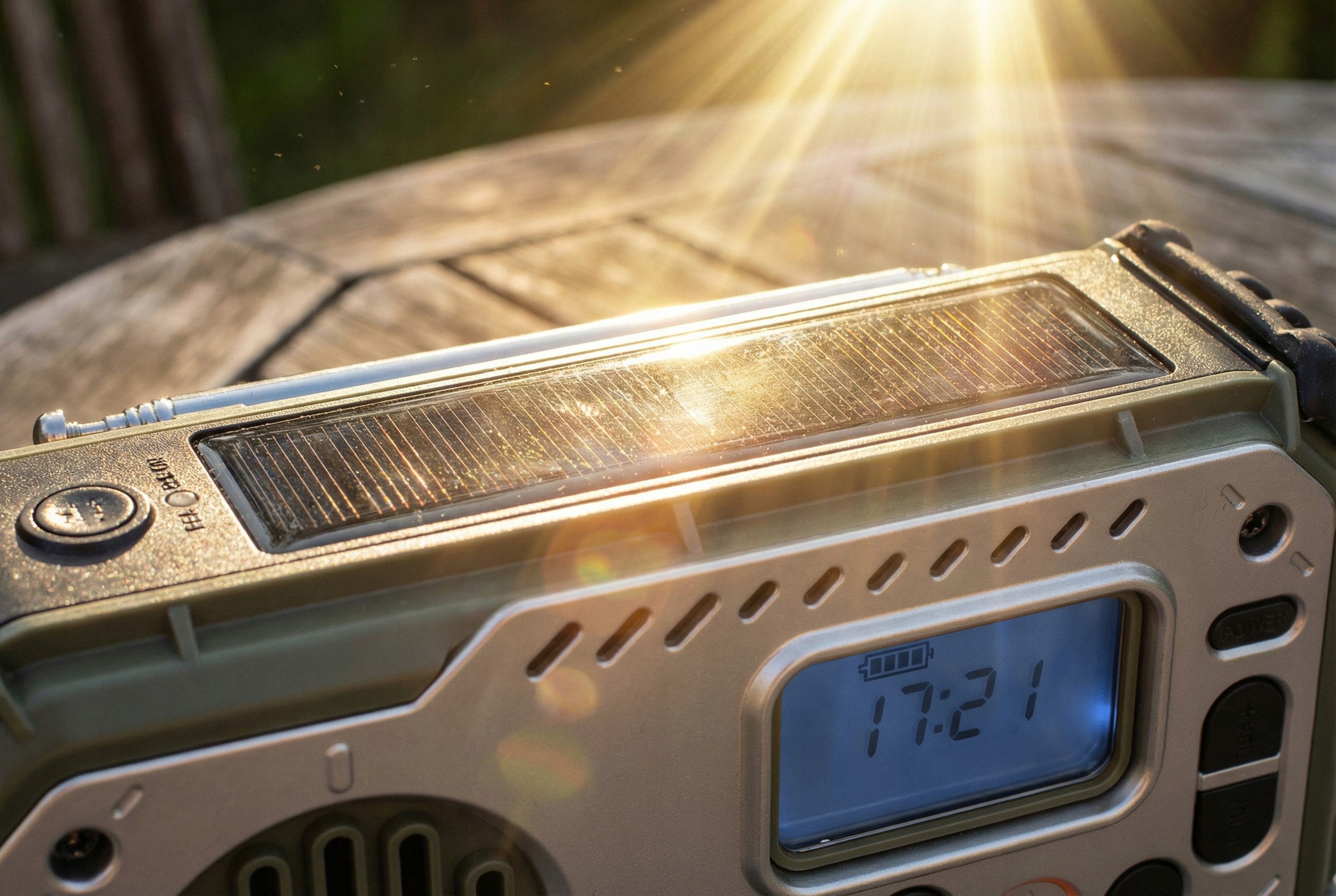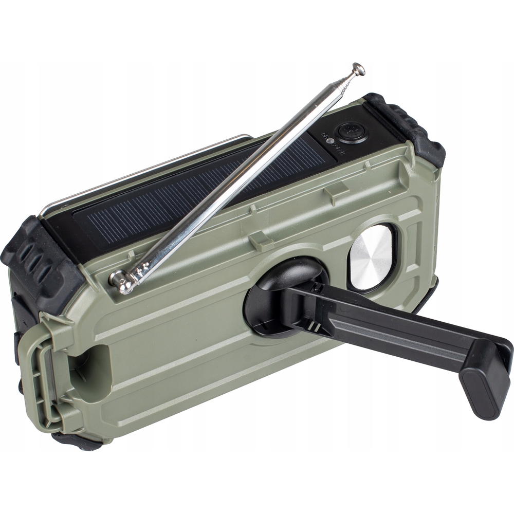 - Dodatkowe funkcje: Panel solarny, korbka (dynamo), latarka, alarm SOS