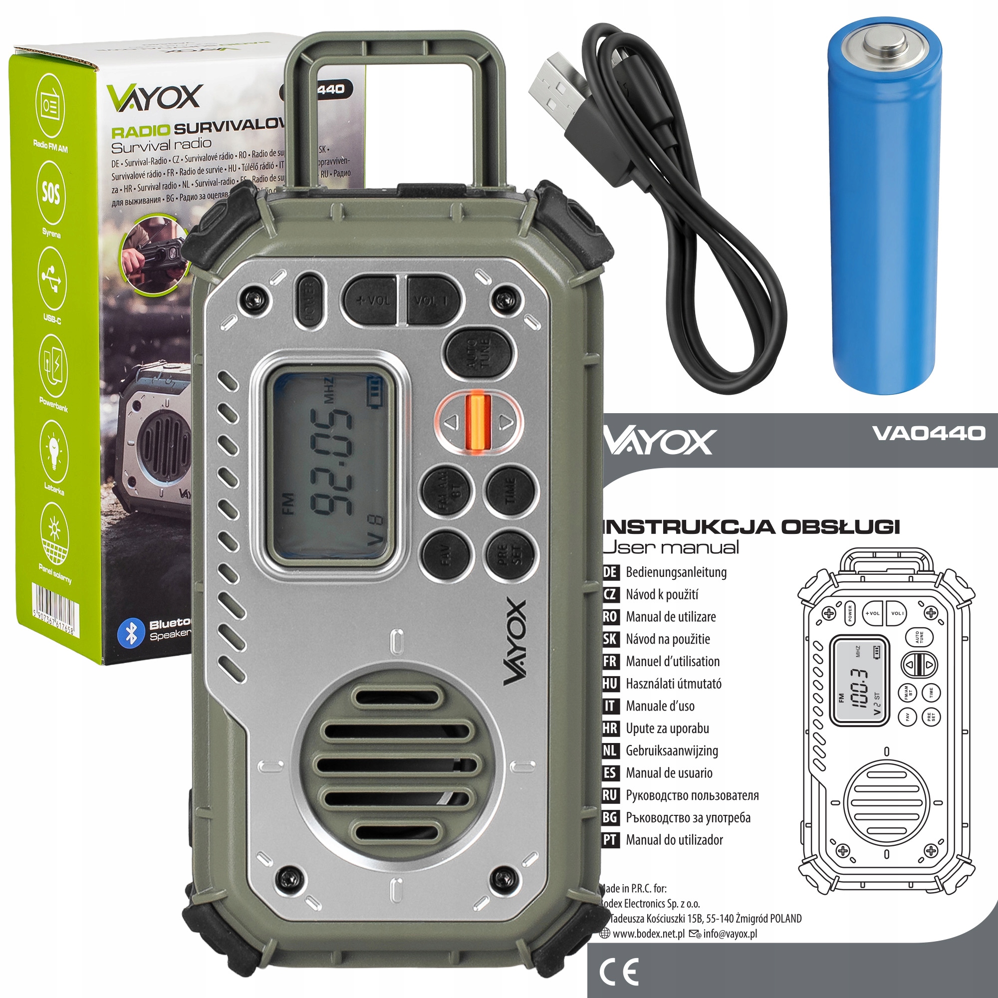 Radio turystyczne survivalowe Vayox VA0440 FM/AM/Bluetooth, Latarka/Powerbank/Solar
