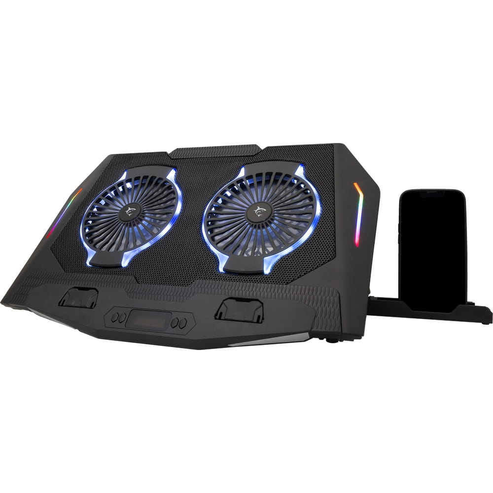 Podstawka chłodząca do laptopa do 17,3”, White Shark ICE SHADOW RGB, uchwyt na telefon, 2 duże wentylatory, czarna