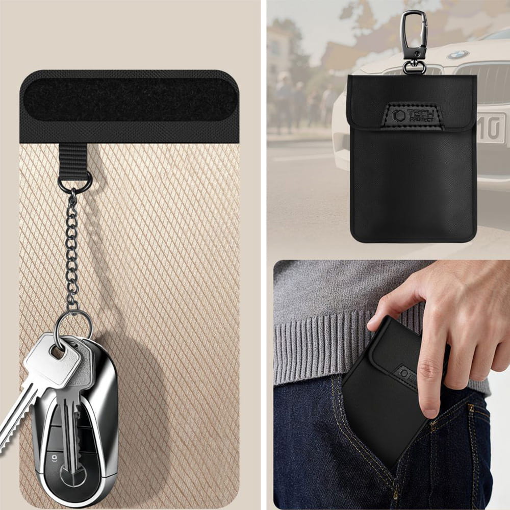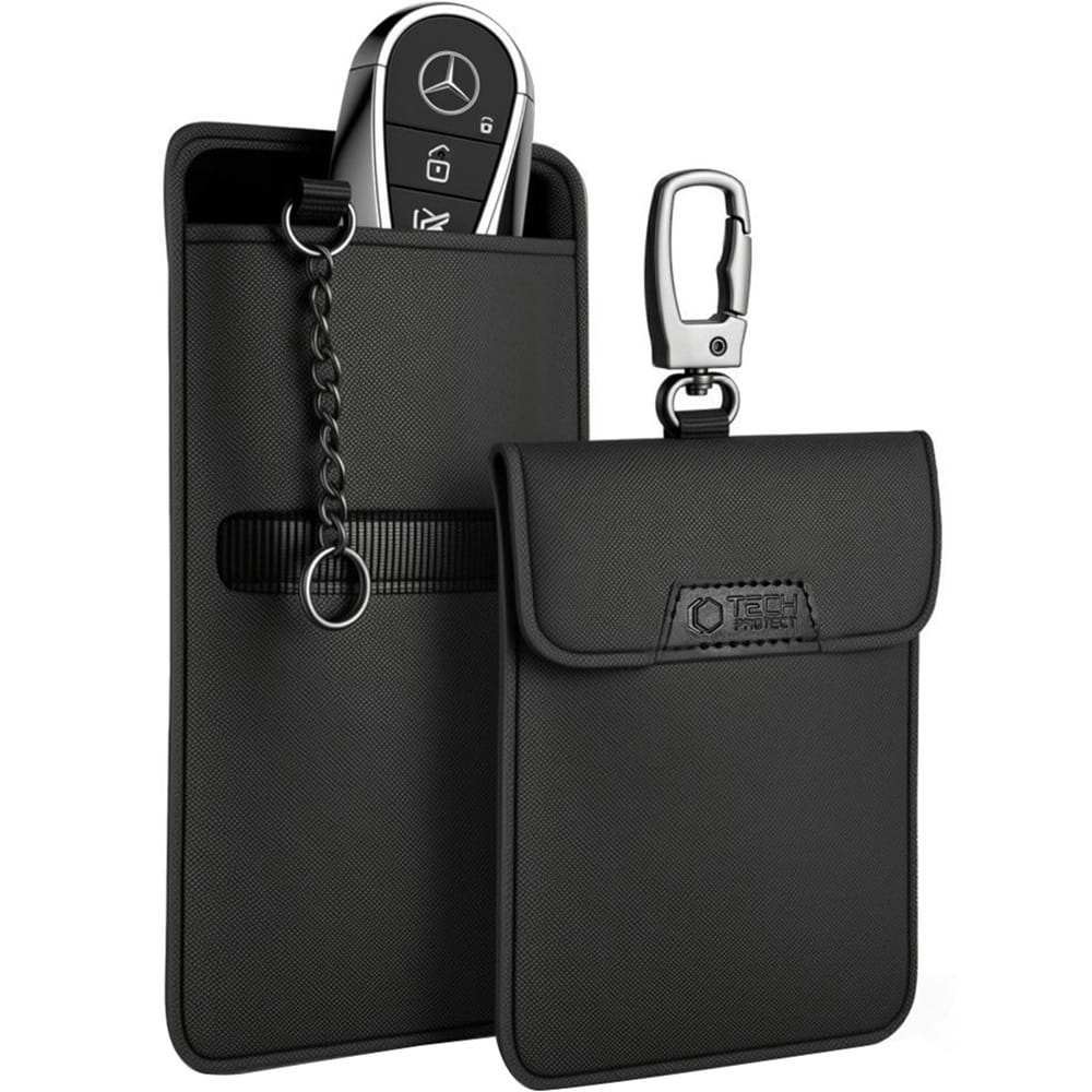 Tech-Protect KLR400 to etui, zaprojektowane z myślą o zabezpieczaniu kluczyków z systemem Keyless oraz kart płatniczych przed niepożądanym odczytem i przechwyceniem sygnału. Podwójna warstwa nano włókien efektywnie blokuje fale radiowe, sygnały RFID, Bluetooth, Wi-Fi i GPS zapewniając zwiększoną ochronę dla właścicieli samochodów, zabezpieczając tym samym przed potencjalną kradzieżą i nieautoryzowanym dostępem do pojazdu.