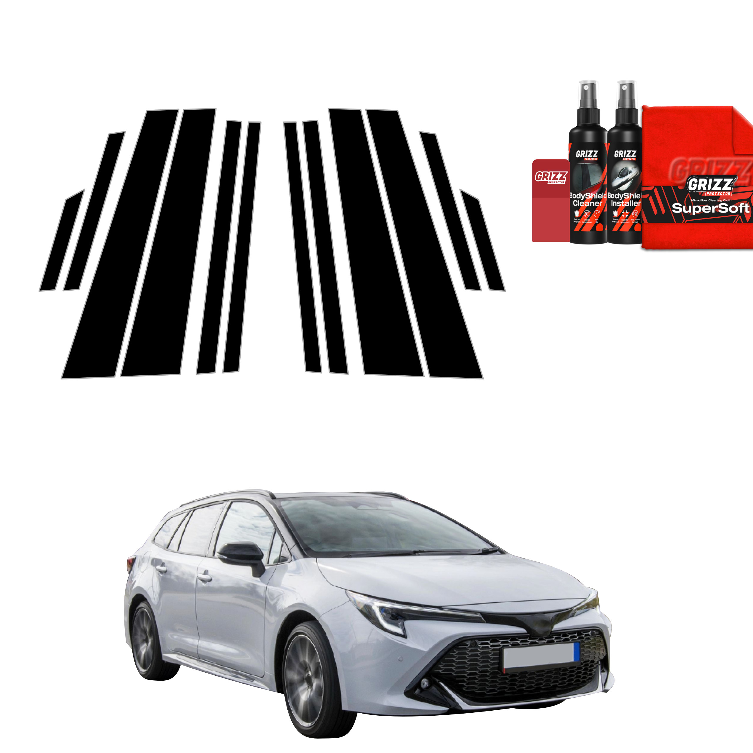 12w1 Czarna folia Grizz Protector na słupki do Toyota Corolla Kombi (2019-2022)