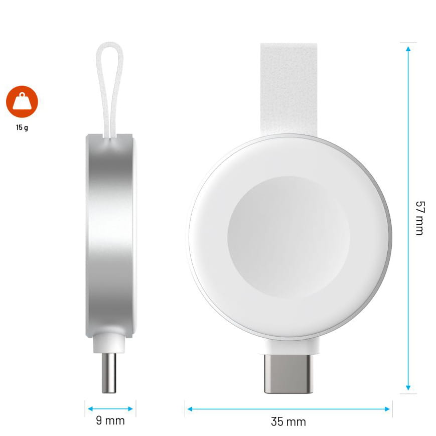 Wtyk USB-C robi tu całą robotę – nie potrzeba żadnego kabla, żeby naładować Apple Watch. Wystarczy wpiąć ładowarkę bezpośrednio do zasilacza, smartfona, laptopa, tabletu, czy powerbanku. Nie ma ryzyka, że coś się poplącze – bo nic nie ma prawa się poplątać. Urządzenie zyskuje na mobilności, nie tracąc przy tym ani trochę ze swojej funkcjonalności. Idealna opcja dla tych, którzy chcą ładować zegarek w pociągu, na lotnisku albo na ławce w parku.