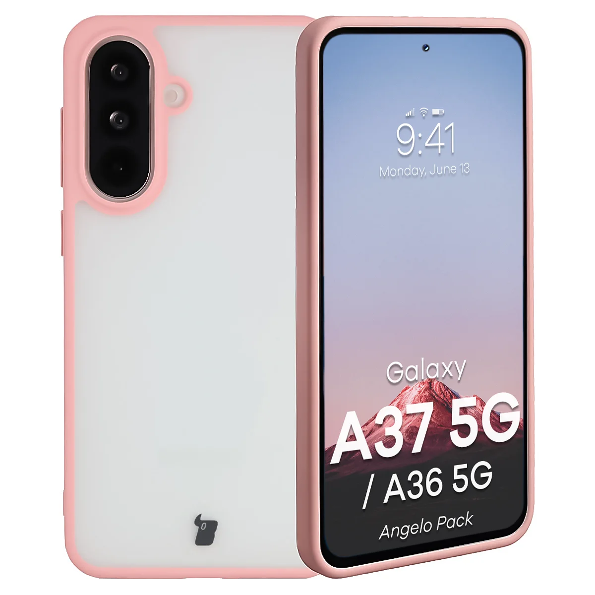 Etui + szkło hartowane Bizon Angelo Pack do Galaxy A37 5G / A36 5G, półprzezroczyste z jasnoróżową ramką