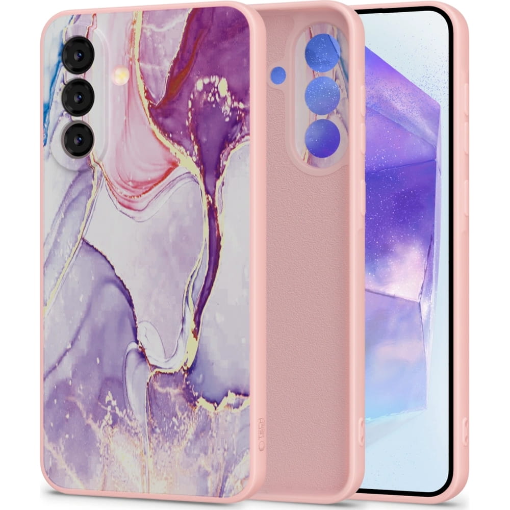 Etui silikonowe Tech-Protect Icon do Galaxy A56 5G, różowe z marmurowym wzorem