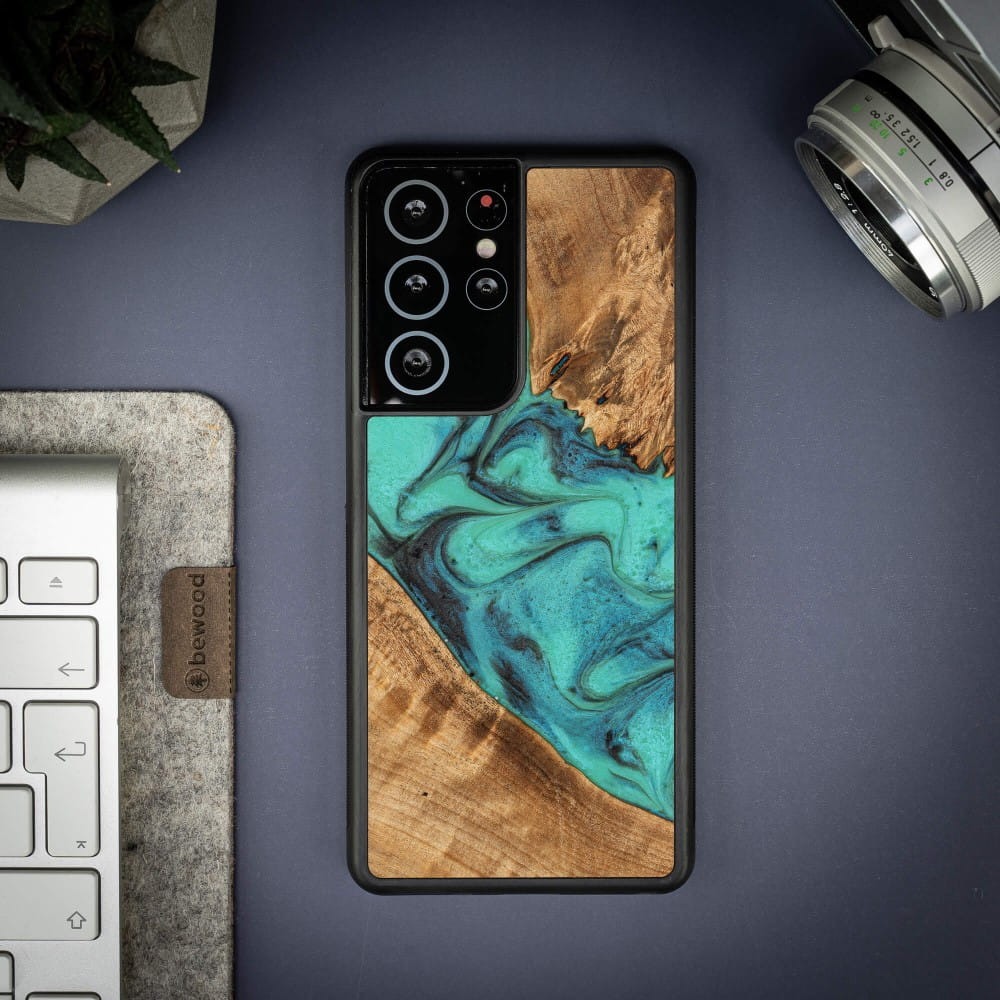 Drewniane etui do Galaxy S21 Ultra, Bewood Unique Turquoise