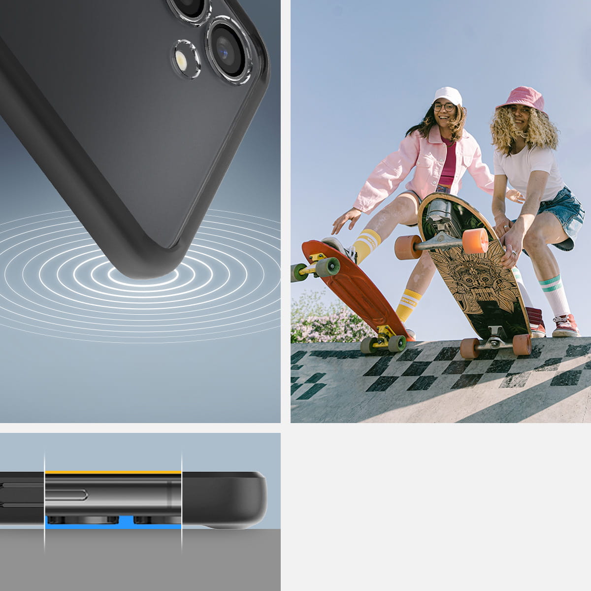 Etui zapewnia solidną ochronę przy minimalnych gabarytach oraz wadze podczas upadków. Dzięki technologii Air Cushion®, czyli poduszek powietrznych umiejscowionych w narożnikach, skutecznie amortyzuje wstrząsy od upadków, spełniając wymogi standardu odporności Mil-Grade.