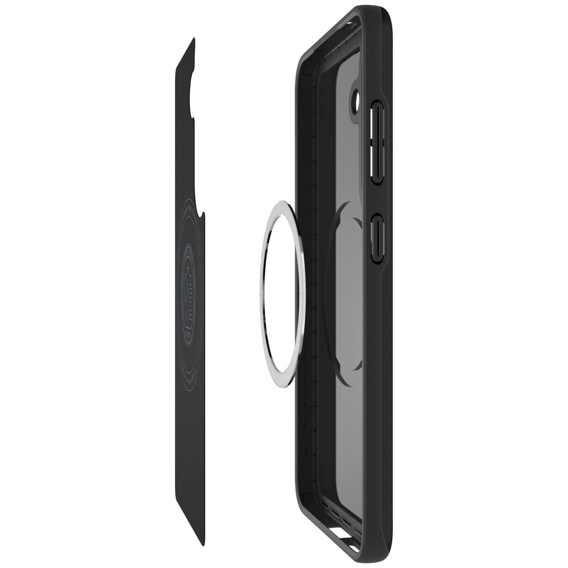 Hybrydowe etui od marki Spigen z serii Thin Fit Mag to jeden z cieńszych i lekkich pokrowców tej firmy, zaprojektowany tak, aby nie dodawał zbędnej objętości urządzeniu. Obudowa wykonana została z połączenia termopoliuretanu oraz poliwęglanu, dzięki czemu mimo smukłej budowy nadal zapewnia skuteczną ochronę przed zarysowaniami i zabrudzeniami w codziennym użytkowaniu. Ergonomiczna konstrukcja sprawia, że całość świetnie leży w dłoni oferując wygodny i pewny chwyt. To świetny cover dla tych, którzy cenią sobie minimalistyczny i ascetyczny design, a dzięki wbudowanemu pierścieniowi magnetycznemu pokrowiec jest kompatybilny z akcesoriami z serii MagSafe.