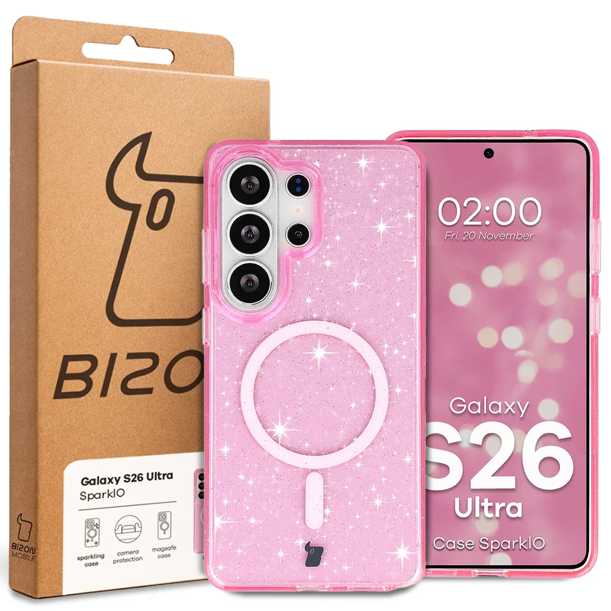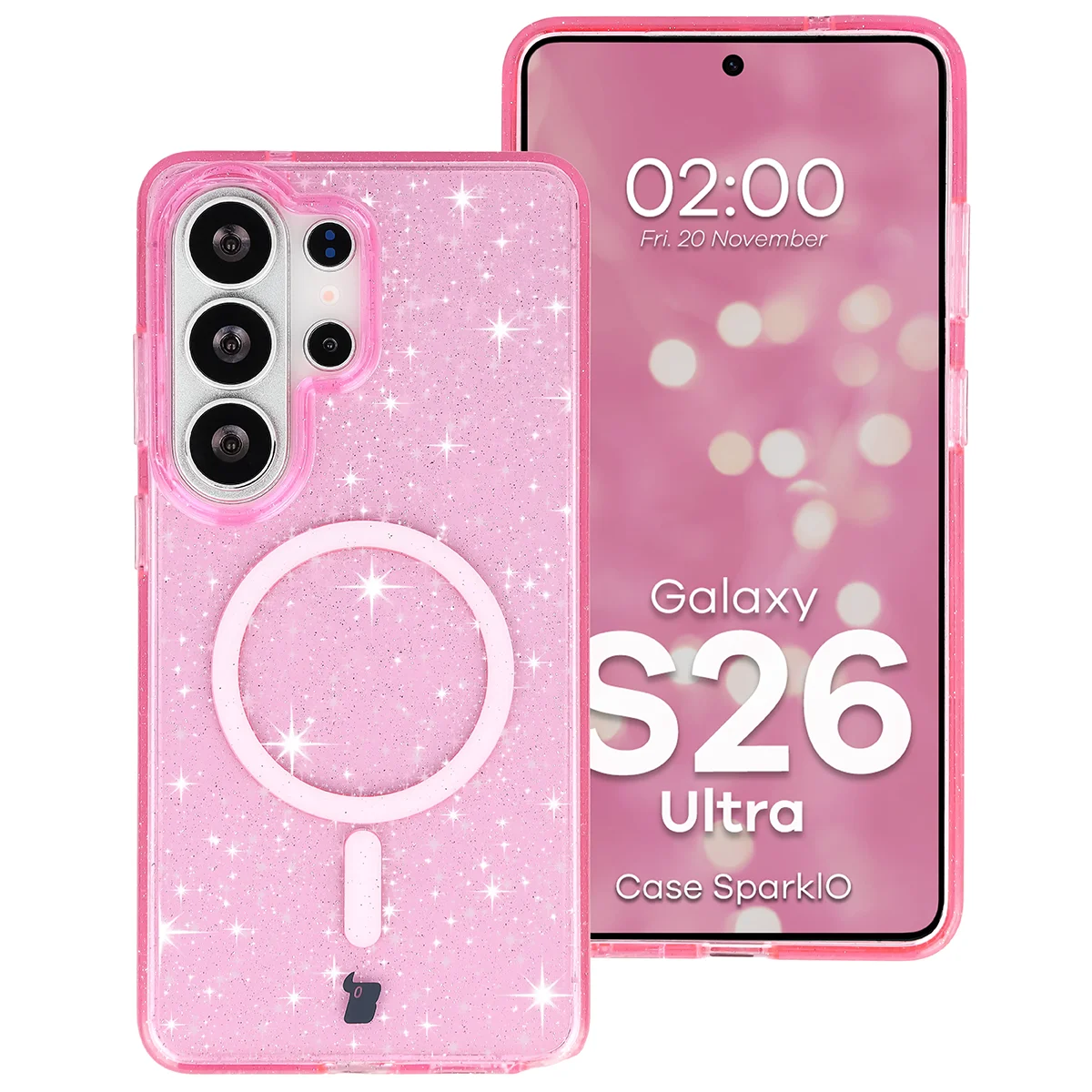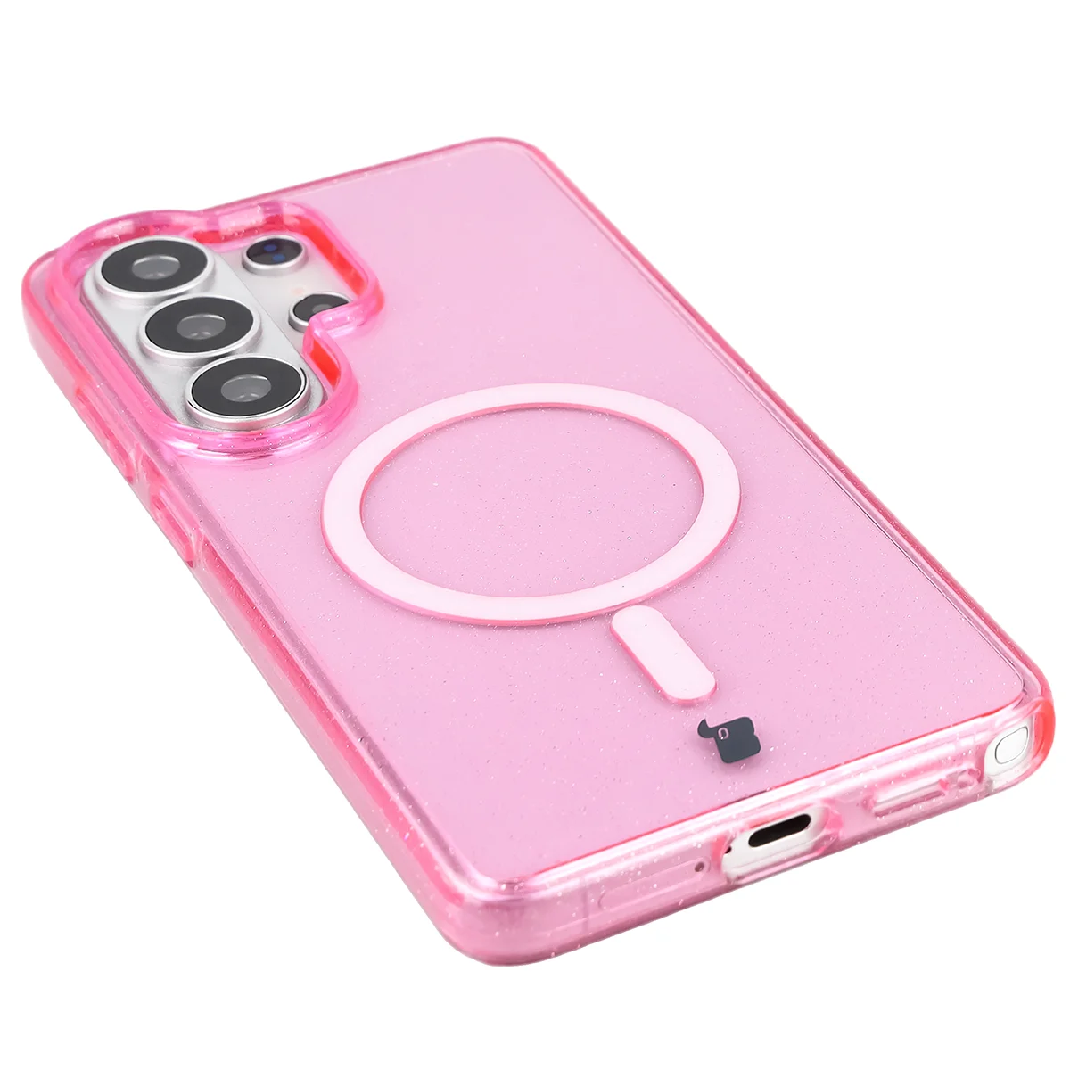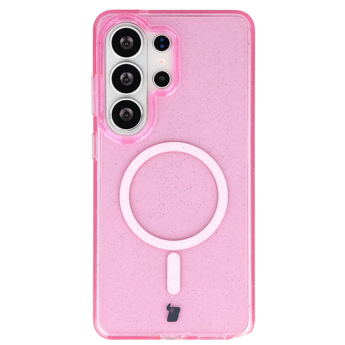 Etui brokatowe z pierścieniem magnetycznym Bizon Case SparklO do Galaxy S26 Ultra, przezroczysto-różowe z brokatem