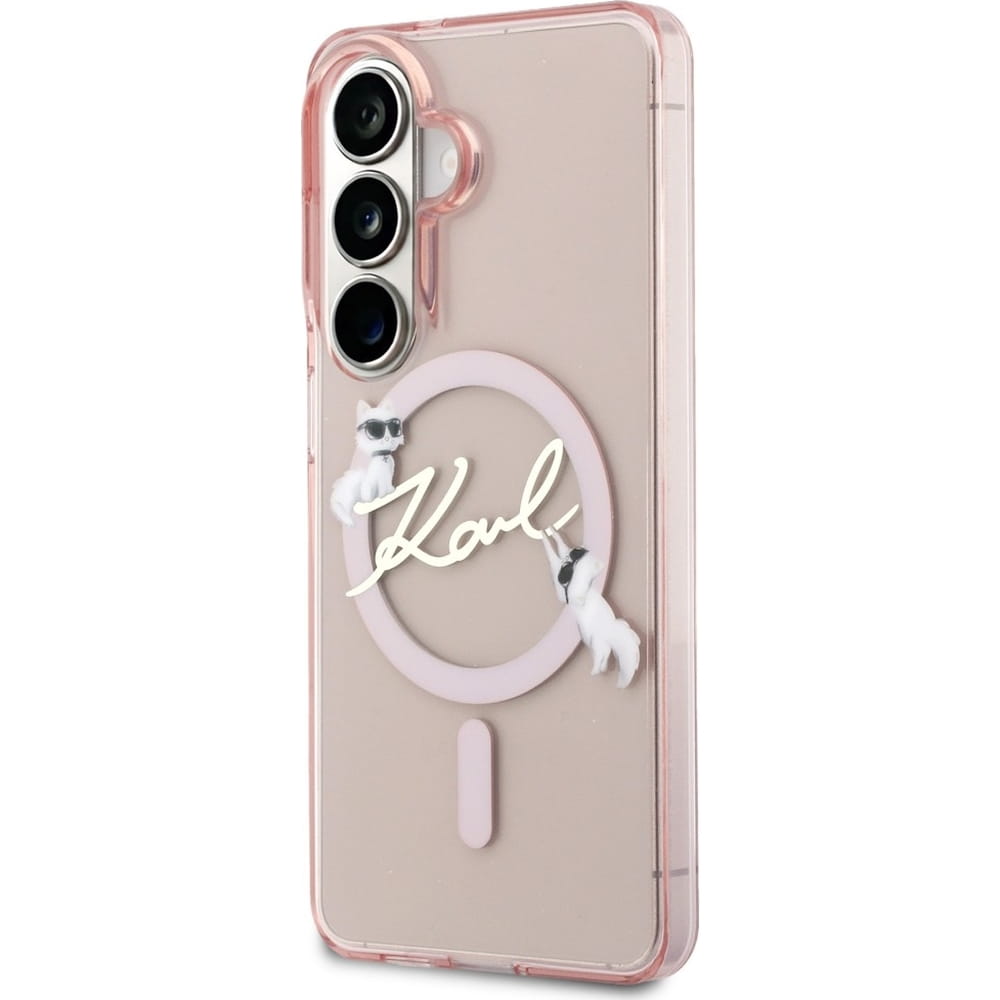 Etui Karl Lagerfeld IML Print MagSafe Karl Script do Galaxy S26, półprzezroczyste różowe z kotką Choupette