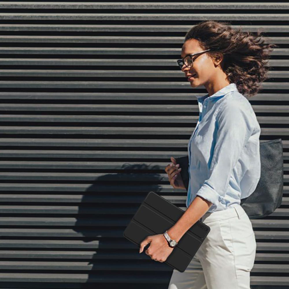 Klapka posiada wewnątrz delikatną wyściółkę chroniącą ekran przed zarysowaniami, a także funkcję wybudzania i usypiania ekranu. Etui zostało wyposażone w dedykowane miejsce na rysik*, aby móc mieć go w zasięgu ręki.
