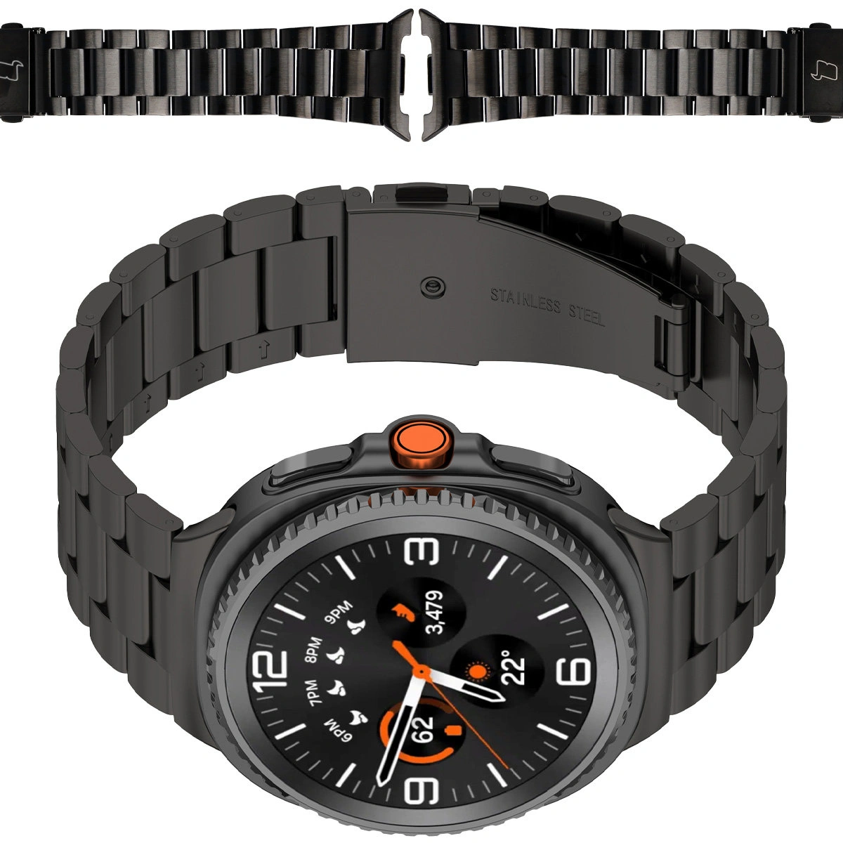 Pasek ze stali nierdzewnej Bizon Strap Watch Aura do Samsung Galaxy Watch 8 40 mm / 44 mm / 8 Classic 46 mm, czarny