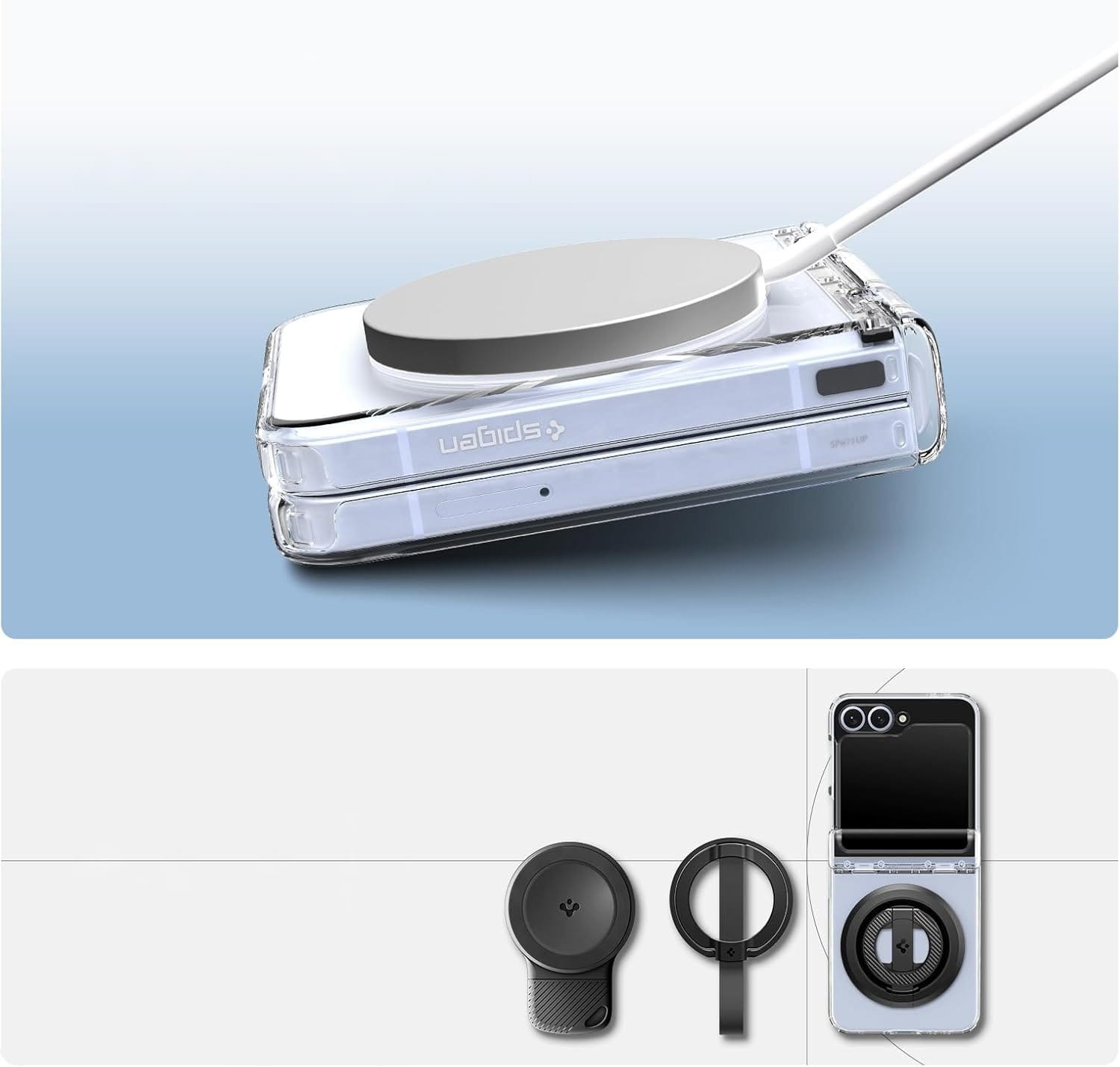 Etui Spigen Ultra Hybrid Pro Mag do MagSafe do Galaxy Z Flip7 FE / 6, przezroczysto-białe