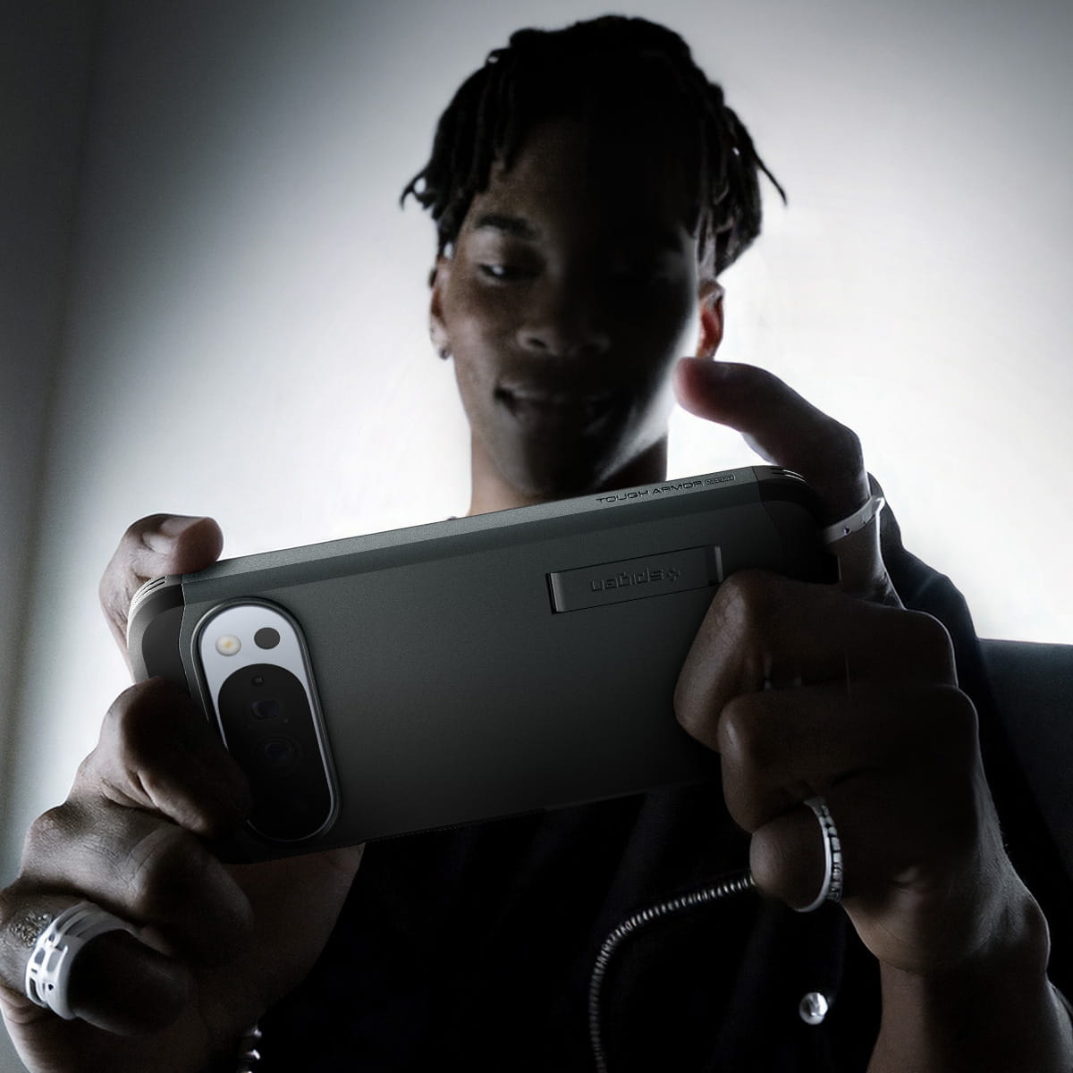 Świetna pozycja od marki Spigen z serii Tough Armor Mag cechująca się wysoką wytrzymałością, a jednocześnie sporym komfortem użytkowania dzięki wbudowanemu pierścieniowi magnetycznemu, który sprawia, że pokrowiec jest kompatybilny z akcesoriami z serii MagSafe. Ponadto wbudowana podstawka KickStand po rozłożeniu pozwala ustawić telefon w pozycji horyzontalnej dla wygodniejszego przeglądania multimediów.