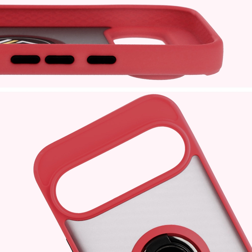Etui z uchwytem na palec Bizon Case Hybrid Ring do Google Pixel 10 Pro XL, przydymione z czerwoną ramką