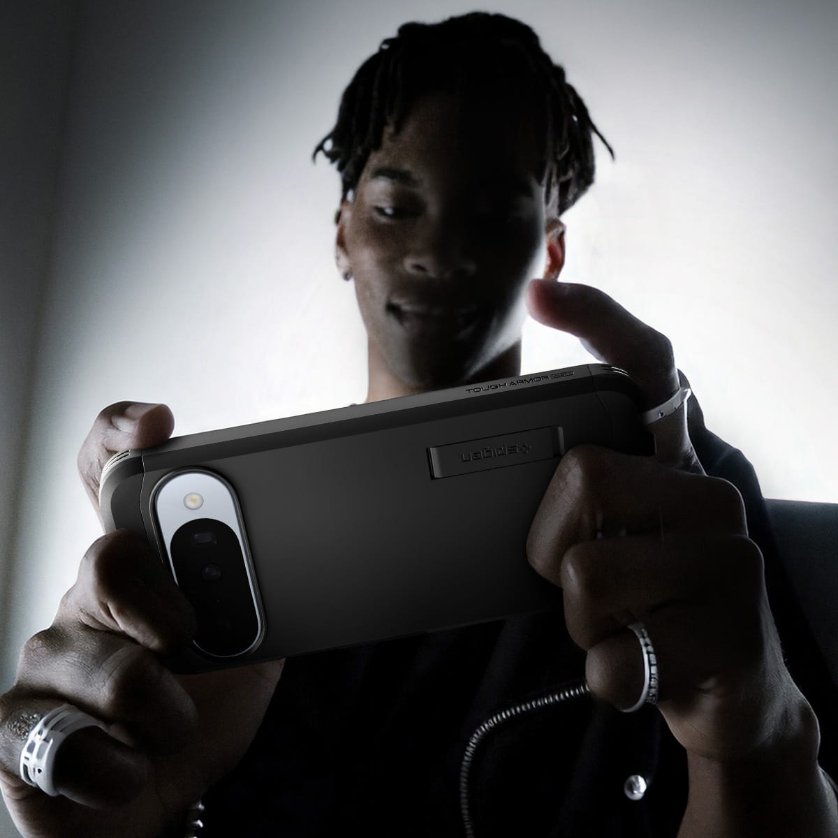 Hybrydowe etui łączy w sobie wewnętrzną warstwę z termoplastycznego poliuretanu oraz zewnętrzny panel z twardego poliwęglanu. Dodatkowo wnętrze zostało uzupełnione o cienką warstwę pianki redukującej wstrząsy, jednak pomimo pancernej konstrukcji obudowa zachowuje stylowy wygląd i doskonale się prezentuje w codziennym użytkowaniu.