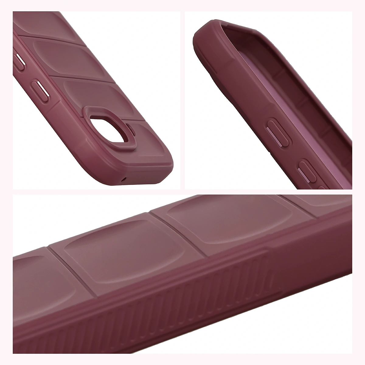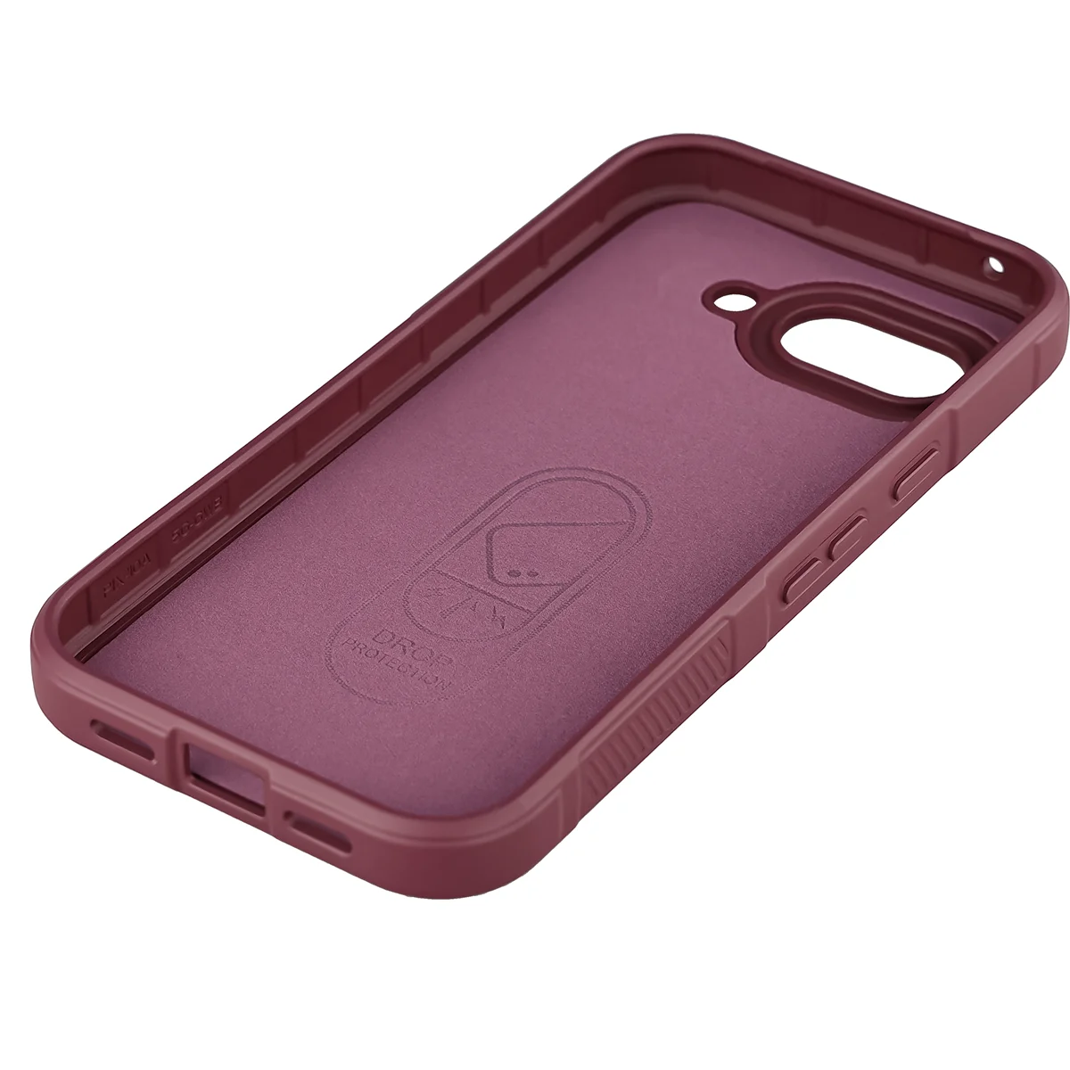 Przywodzące na myśl opony samochodowe, teksturowane boki, zapewniają lepszy chwyt, a gdyby urządzenie i tak upadło — tak jak kanapka, masłem w dół — to nie zderzy się bezpośrednio z podłogą, bo obudowa wystaje ponad krańce telefonu! Podwyższone krawędzie otaczają również wyspę aparatu, co w połączeniu z dedykowanymi wycięciami na soczewki stanowi solidną ochronę obiektywów.