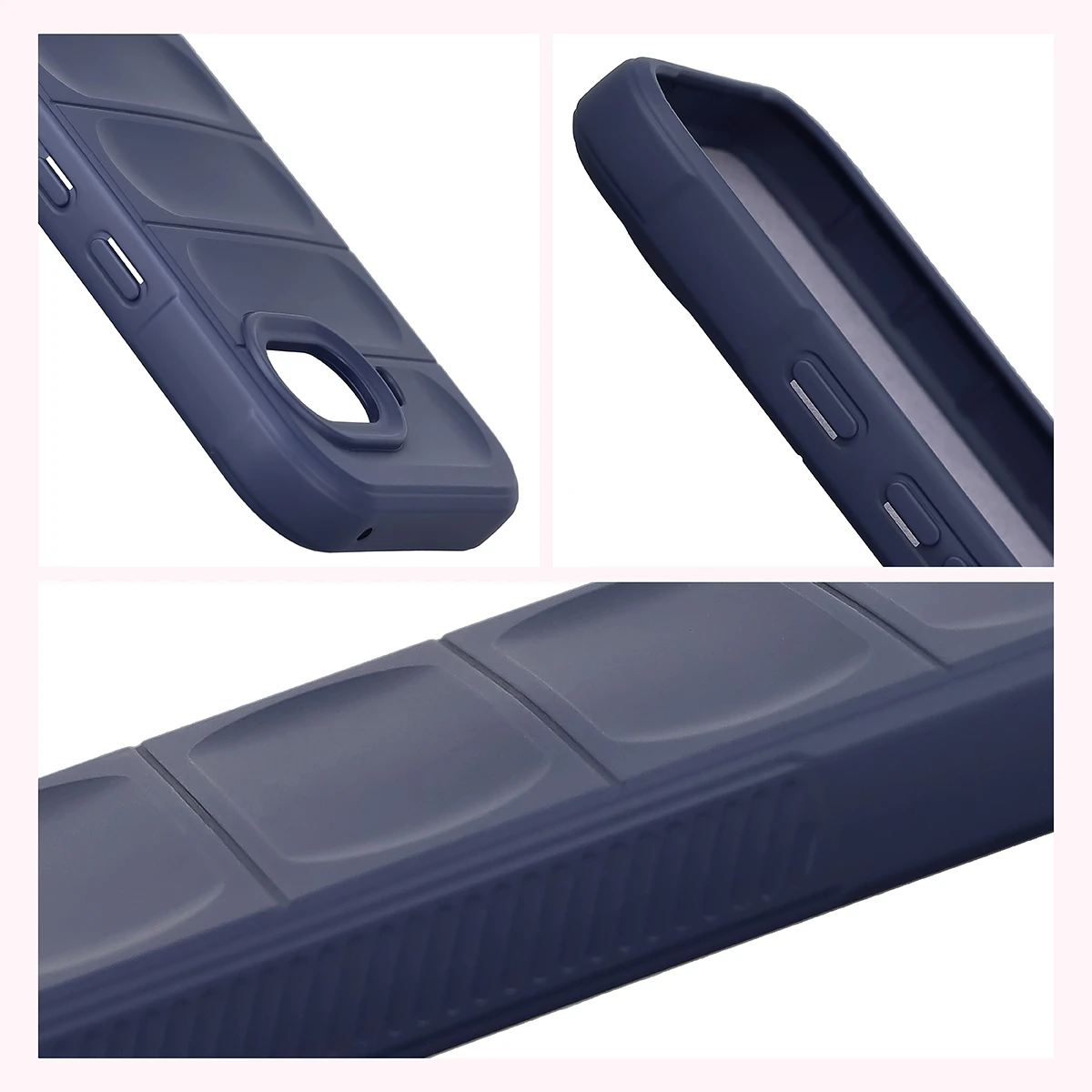 Przywodzące na myśl opony samochodowe, teksturowane boki, zapewniają lepszy chwyt, a gdyby urządzenie i tak upadło — tak jak kanapka, masłem w dół — to nie zderzy się bezpośrednio z podłogą, bo obudowa wystaje ponad krańce telefonu! Podwyższone krawędzie otaczają również wyspę aparatu, co w połączeniu z dedykowanymi wycięciami na soczewki stanowi solidną ochronę obiektywów.