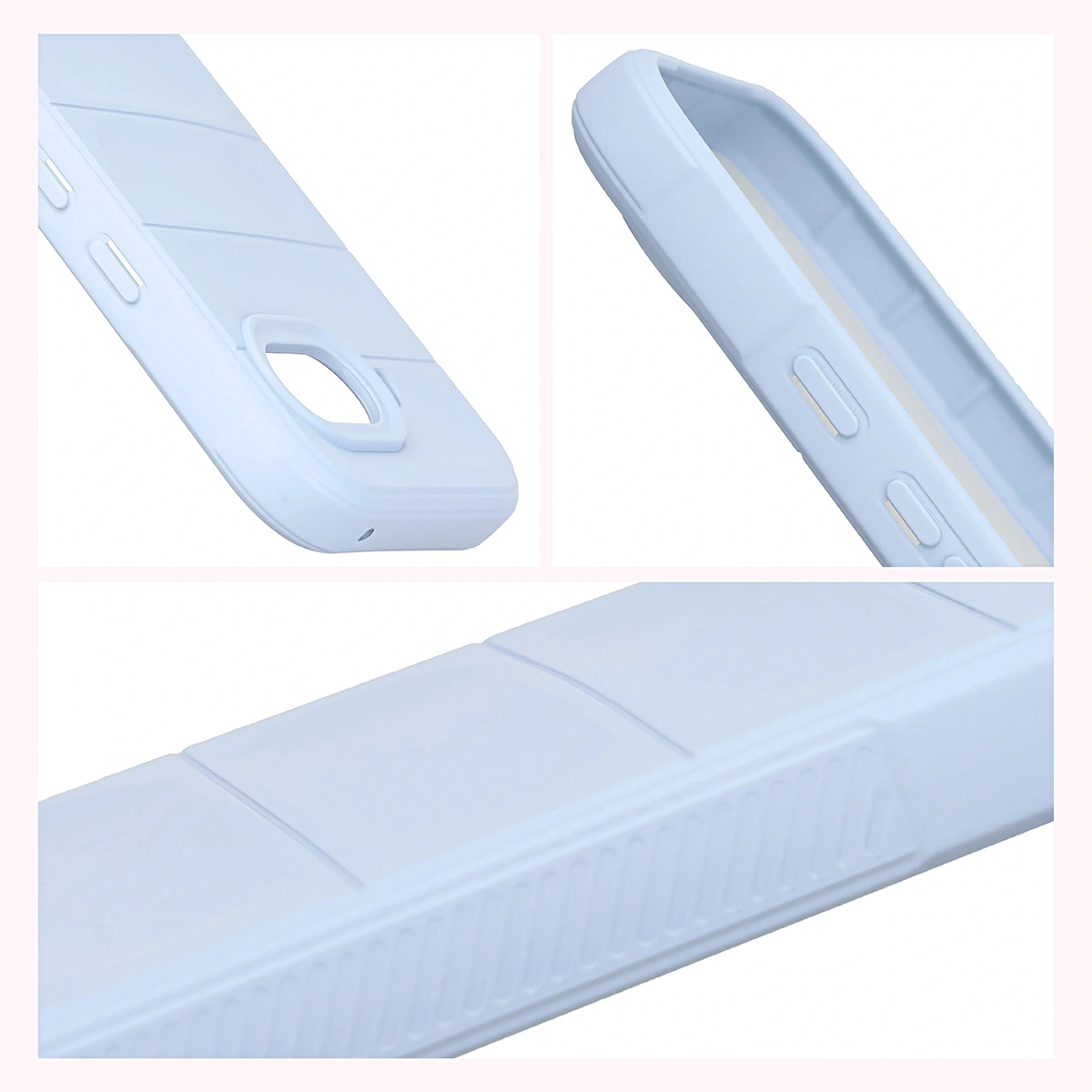 Przywodzące na myśl opony samochodowe, teksturowane boki, zapewniają lepszy chwyt, a gdyby urządzenie i tak upadło — tak jak kanapka, masłem w dół — to nie zderzy się bezpośrednio z podłogą, bo obudowa wystaje ponad krańce telefonu! Podwyższone krawędzie otaczają również wyspę aparatu, co w połączeniu z dedykowanymi wycięciami na soczewki stanowi solidną ochronę obiektywów.