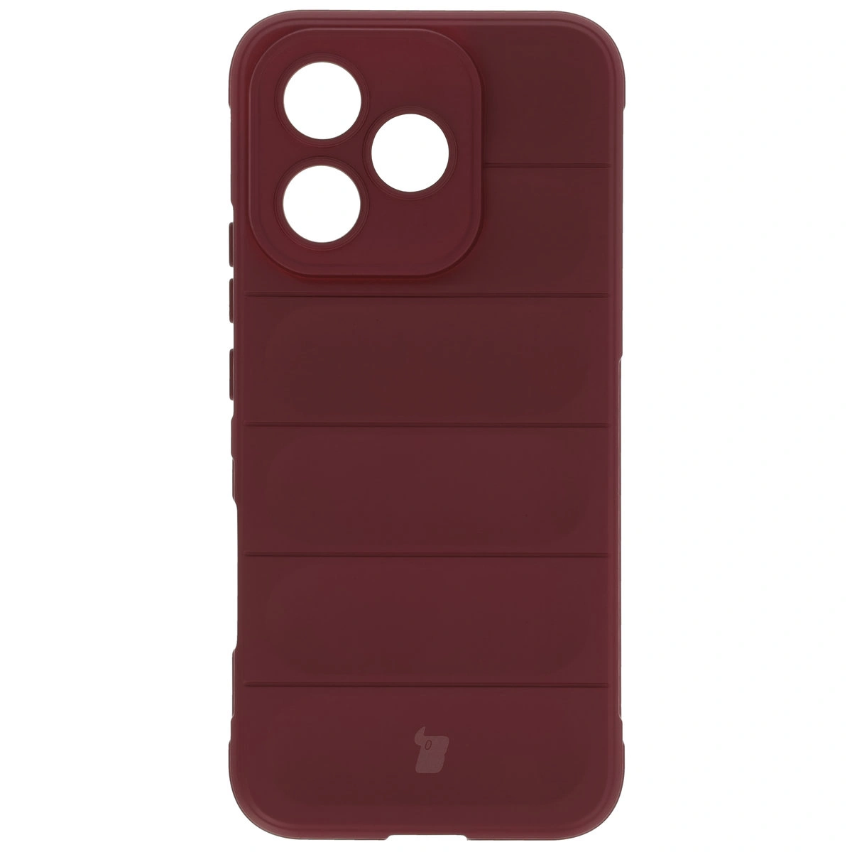 Przywodzące na myśl opony samochodowe, teksturowane boki, zapewniają lepszy chwyt, a gdyby urządzenie i tak upadło — tak jak kanapka, masłem w dół — to nie zderzy się bezpośrednio z podłogą, bo obudowa wystaje ponad krańce telefonu! Podwyższone krawędzie otaczają również wyspę aparatu, co w połączeniu z dedykowanymi wycięciami na soczewki stanowi solidną ochronę obiektywów.