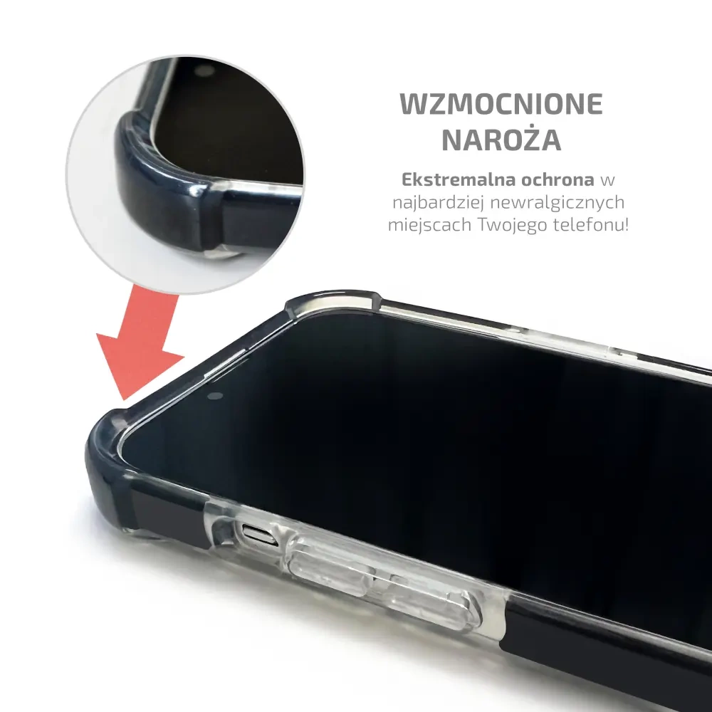 Wytrzymałe bumpery w narożnikach zapewniają skuteczną amortyzację przy każdym upadku bez względu na kąt czy wysokość. Elastyczna warstwa silikonu otula urządzenie, sprawiając, że energia uderzenia zostaje równomiernie rozłożona po całej obudowie.