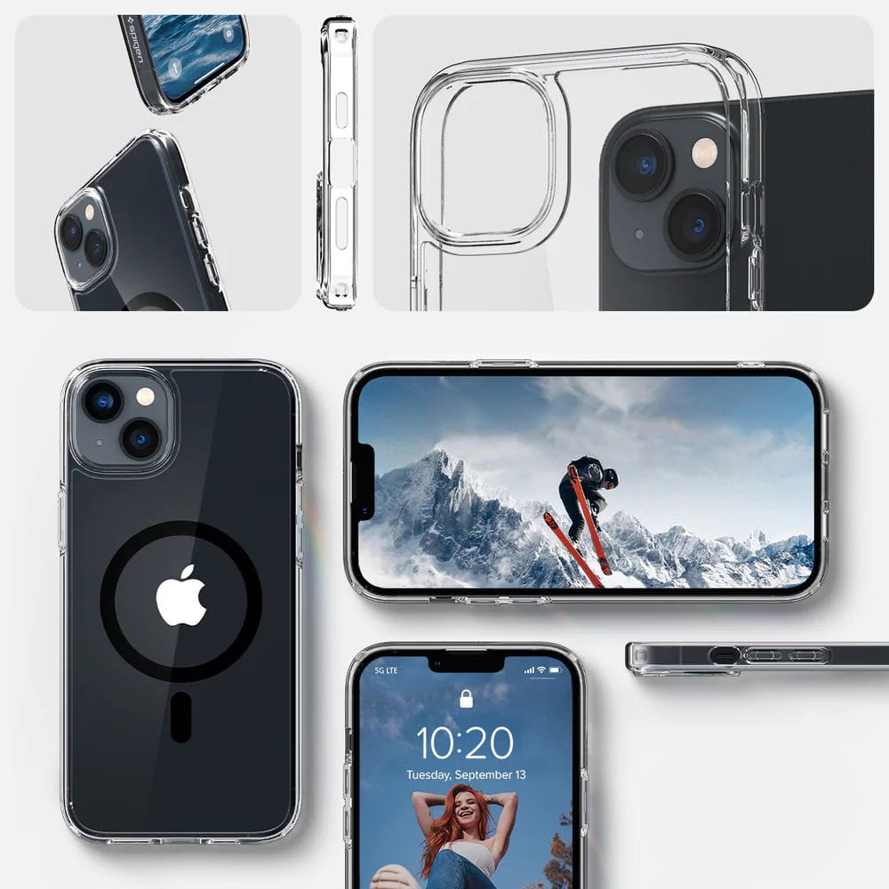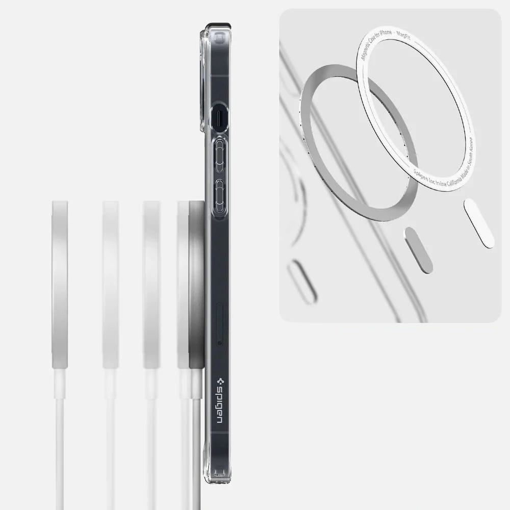 Hybrydowe etui od marki Spigen z serii Ultra Hybrid Mag to pokrowiec, który dzięki wbudowanemu pierścieniowi magnetycznemu jest kompatybilny z akcesoriami z serii Apple MagSafe. Cover wykonany został z połączenia termoplastycznej poliuretanowej ramki oraz wytrzymałej poliwęglanowej tylnej osłony. Jednoczęściowa konstrukcja typu "plecki" zapewnia doskonałą ochronę w codziennym użytkowaniu. Ergonomiczna budowa sprawia, że całość świetnie leży w dłoni oferując wygodny i pewny chwyt. Smukły design z przezroczystym tyłem prezentuje oryginalny wygląd Twojego urządzenia.