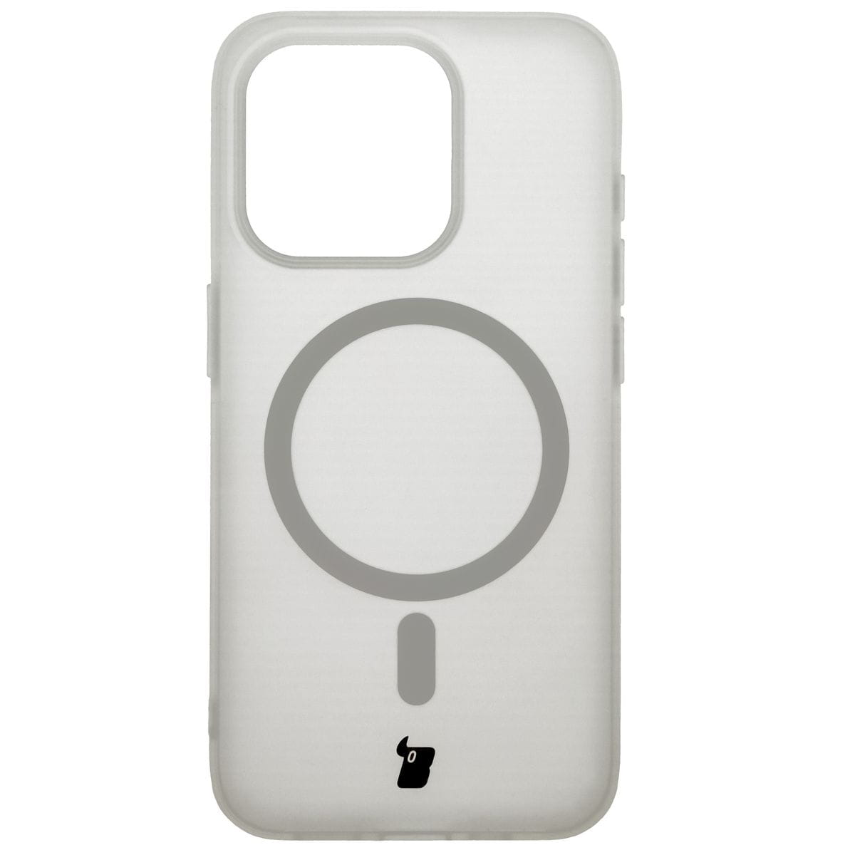 Etui z pierścieniem magnetycznym Bizon Case MatteO do iPhone 15 Pro, półprzezroczyste