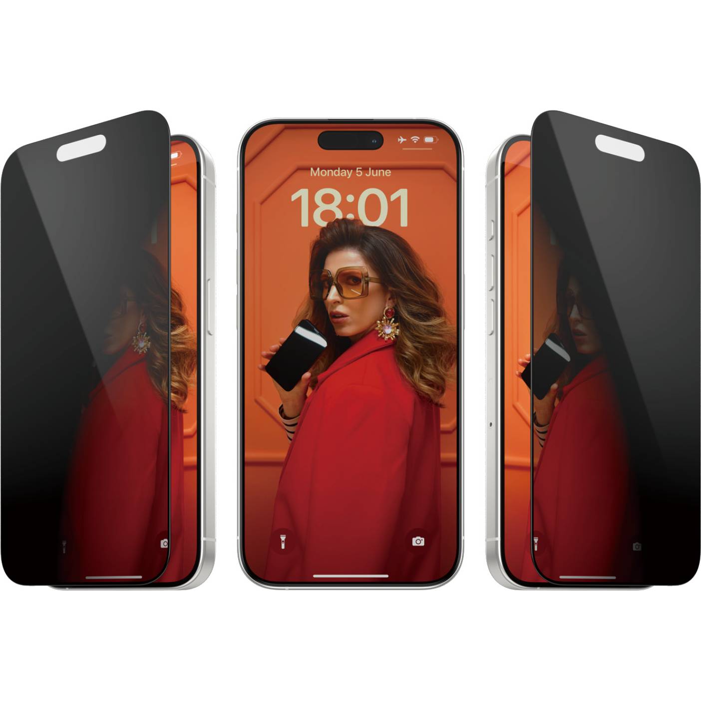 Szkło hartowane na cały ekran PanzerGlass Ultra-Wide Fit Privacy + EasyAligner do iPhone 15 Pro, przyciemniane z czarną ramką
