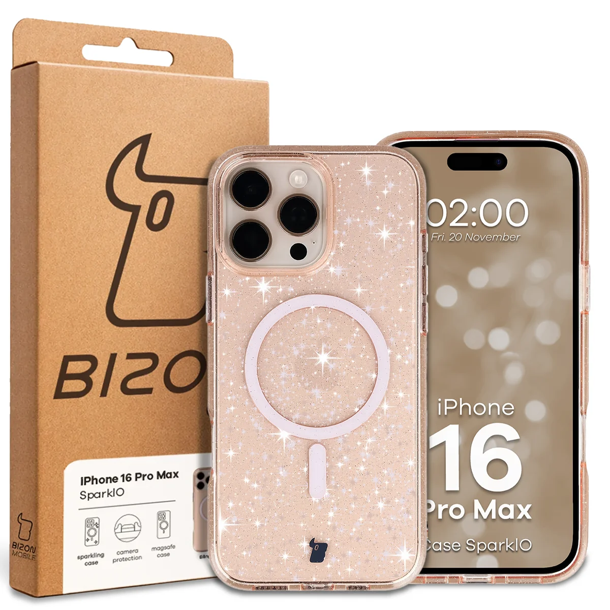 To nie wampir w pełnym słońcu, tylko etui marki Bizon! SparklO to etui stworzone dla tych, którzy lubią się wyróżniać. Chroni telefon przed zarysowaniami, uszkodzeniami i... nudnym wyglądem! Zatopione w materiale brokatowe drobinki mienią się przy każdym ruchu telefonu, a wbudowany pierścień magnetyczny pozwala na korzystanie z szerokiej gamy akcesoriów do MagSafe.