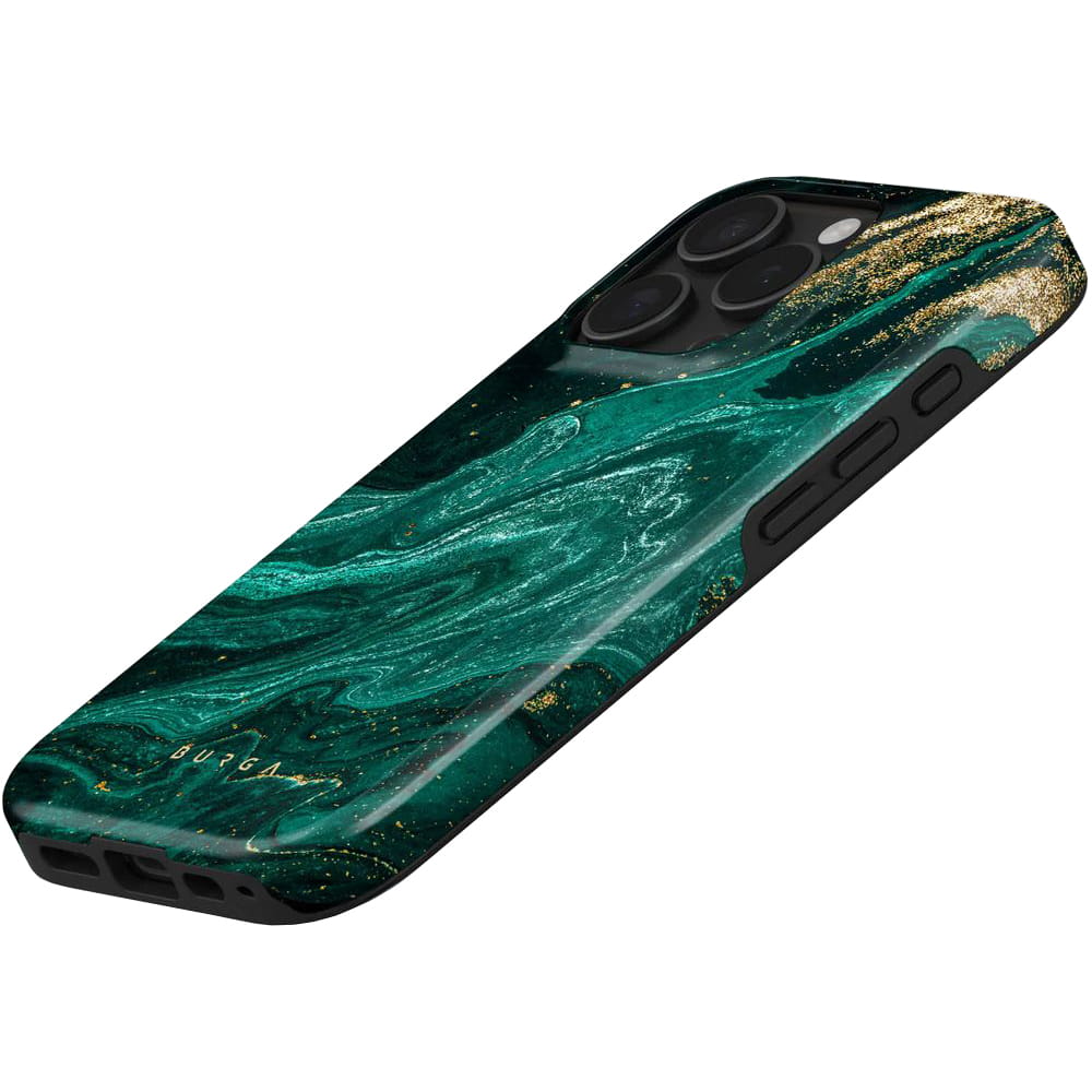 Futerał Emerald Pool Tough od firmy Burga to znacznie więcej niż zwykły pokrowiec na telefon. To niezwykły case, który połączył modny marmurowy wzór z urzekającą zielenią, tworząc kawałek magii w Twojej dłoni, co sprawia, że jest to niezwykle wyraziste etui. To nie tylko kwestia stylu — ten produkt to połączenie estetyki i funkcjonalności, które z pewnością Cię zachwyci.