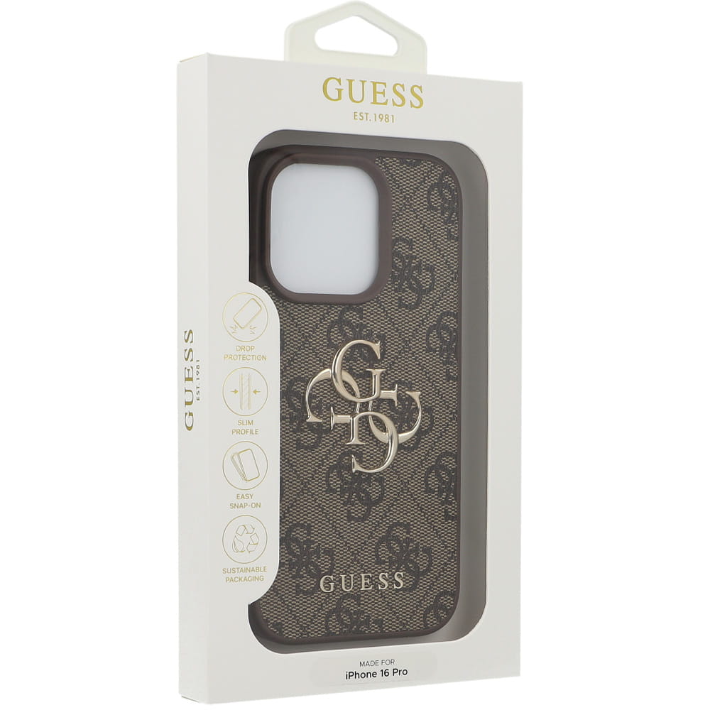Etui Guess Hardcase 4G Big Metal Logo do iPhone 16 Pro, brązowe