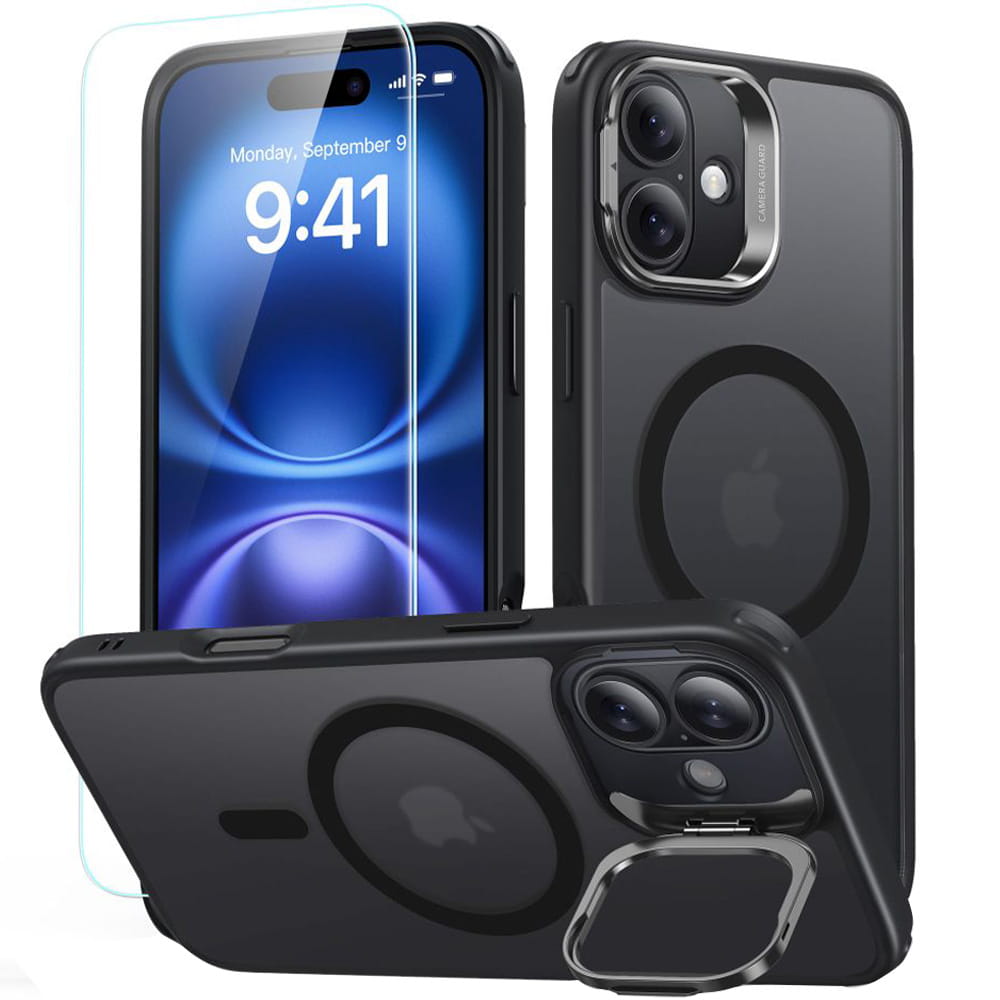 Etui + szkło ESR Classic Hybrid KickStand do iPhone 16 do MagSafe, półprzezroczysto-czarne