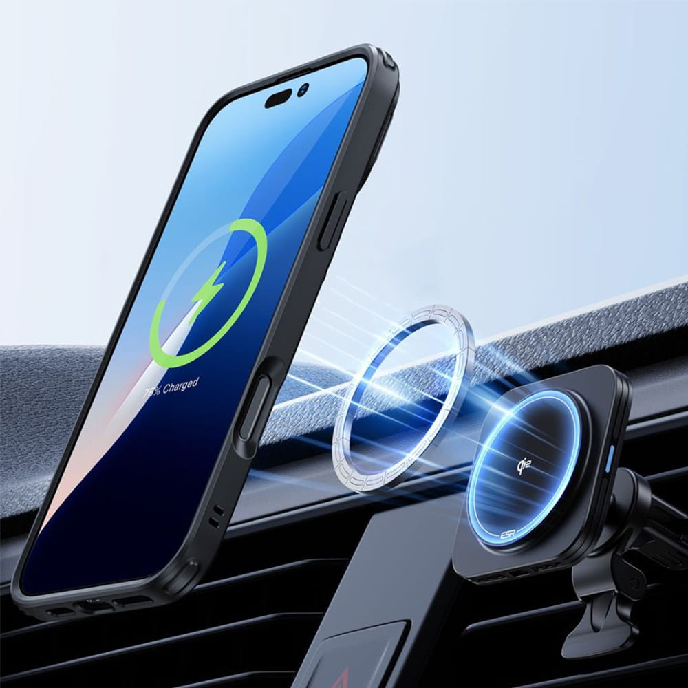 Wbudowany pierścień magnetyczny na pleckach to dodatkowy atut pokrowca, dzięki któremu Twój telefon z MagSafe nadal będzie mógł korzystać ze wszystkich akcesoriów kompatybilnych z tym system mocowania, bez potrzeby jego zdejmowania. Konstrukcja etui zapewnia maksymalną wydajność oraz szybkie i proste połączenie z urządzeniami z funkcją MagSafe.
