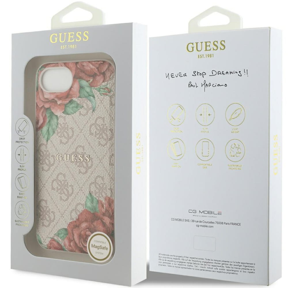 Amerykańska firma Guess od wielu lat jest utożsamiania z bardzo dobrą jakością i oryginalnym wzornictwem. Etui z kolekcji Guess Hardcase 4G Flowers Print MagSafe wyprodukowane przez firmę CG Mobile na oficjalnej licencji marki Guess jest pozycją dla osób ceniących sobie klasykę i styl.
