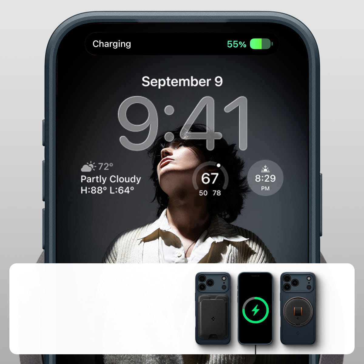 Wewnątrz etui znajduje się dyskretnie wbudowany pierścień magnetyczny zapewniający kompatybilność z akcesoriami z serii MagSafe. Dzięki niemu nadal możesz korzystać z posiadanej ich gamy bez potrzeby zdejmowania pokrowca.