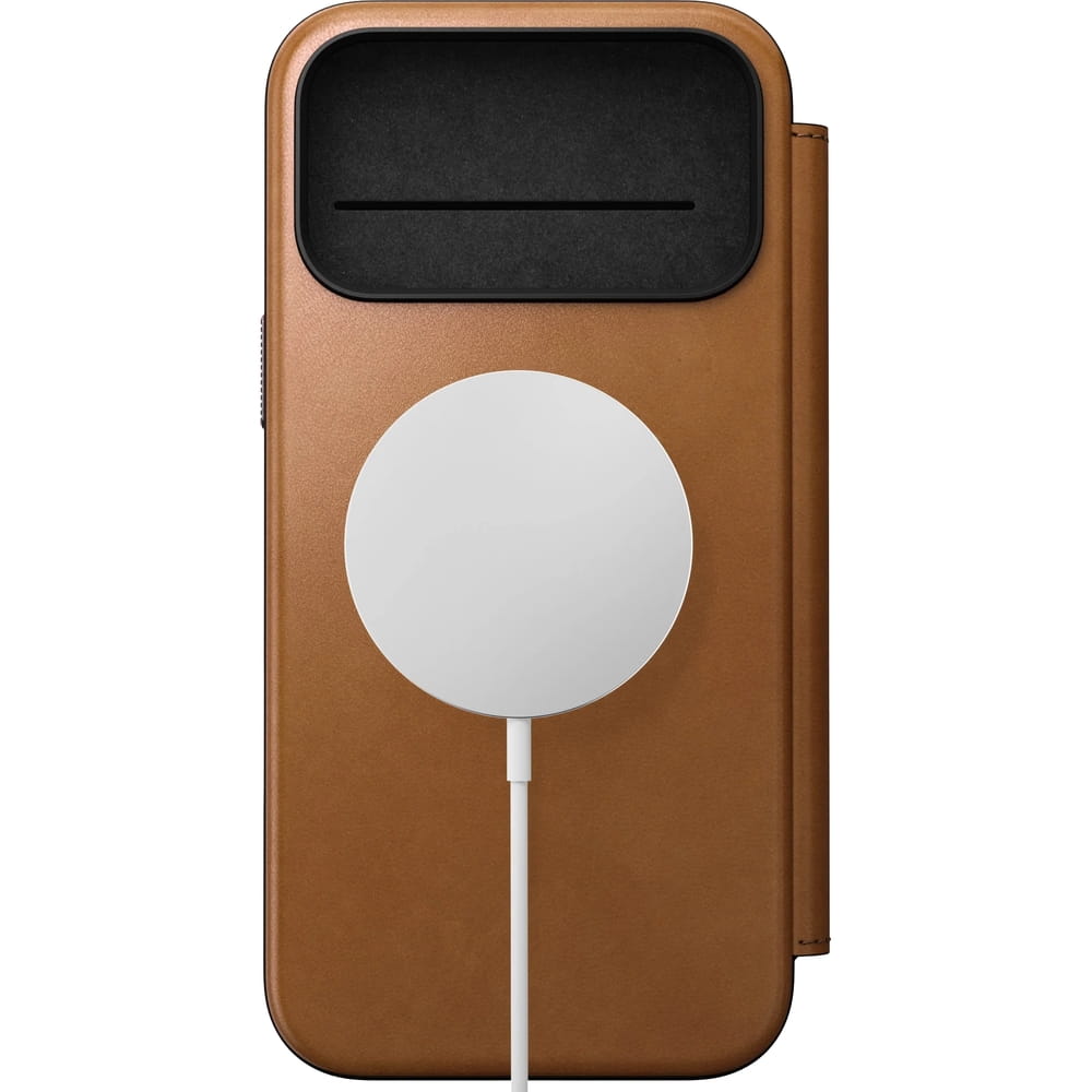 Etui z klapką Nomad Modern Leather Folio do MagSafe, do iPhone 17 Pro Max, jasnobrązowe