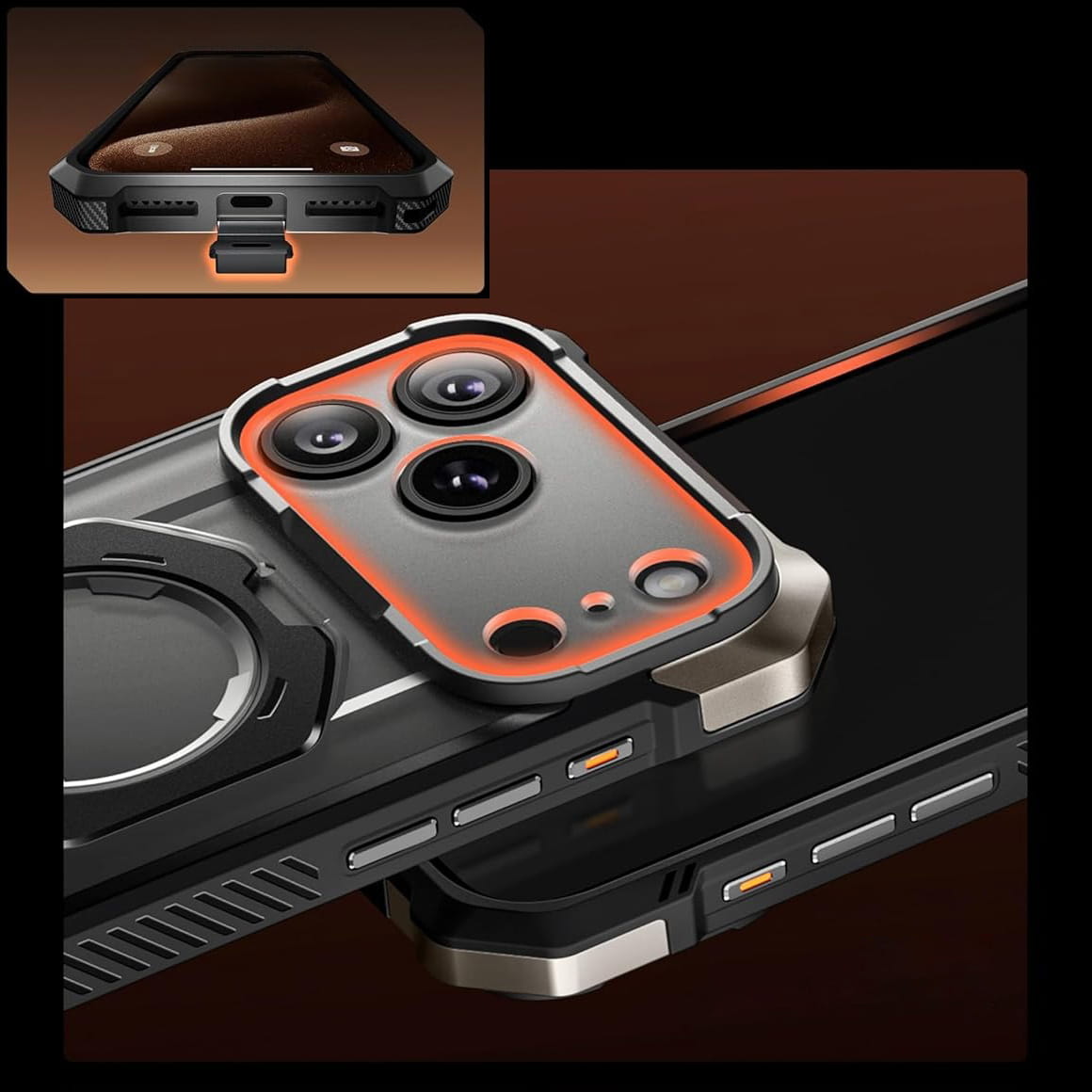 Dzięki zintegrowanej podpórce Stand, którą pełni ring MagSafe, z łatwością ułożysz swojego smartfona w pozycji poziomej lub pionowej dla łatwiejszego przeglądania multimediów. Stojak łatwo się rozkłada i składa, i stanowi on integralną część futerału, dzięki czemu zawsze jest dostępny w razie potrzeby. Maksymalny rozstaw stojaka sięga kąta 120°, co oferuje spory zakres regulacji nachylenia.