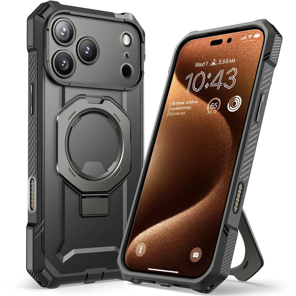 Oryginalne etui typu plecki od marki Supcase z serii Unicorn Beetle Grip Mag wykonane z połączenia amortyzującego termopoliuretanu oraz mocnego poliwęglanu. Obudowa posiada zintegrowany ring magnetyczny oferujący kompatybilność z akcesoriami z serii MagSafe, który pełni także funkcję rozkładanej podpórki Stand. Wykończenia "grip" na bokach sprawiają, że całość doskonale trzyma się w dłoni.