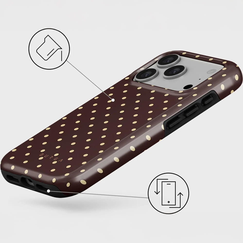 Sorry Busy Tough Magnetic od Burga to coś więcej niż zwykły pokrowiec na telefon. To etui, które zachwyca pięknym brązowym odcieniem z symetrycznymi kropkami. Łączy styl z praktycznością, zachwyca wyglądem i świetnie sprawdza się na co dzień.