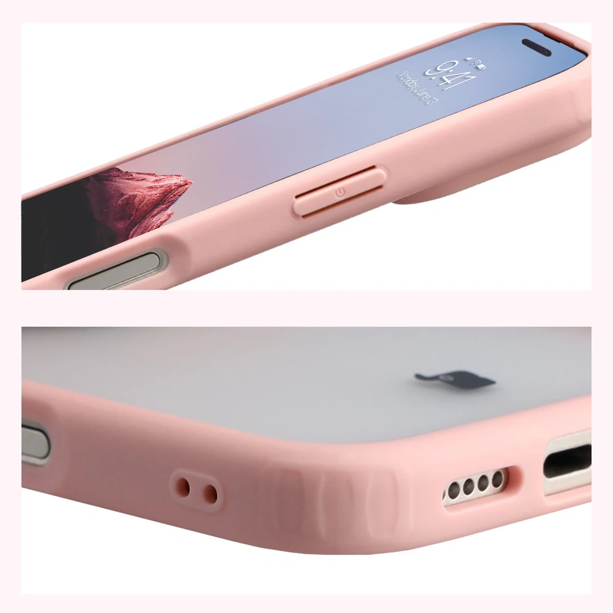 Etui + szkło hartowane Bizon Angelo Pack do iPhone 17 Pro, półprzezroczyste z jasnoróżową ramką