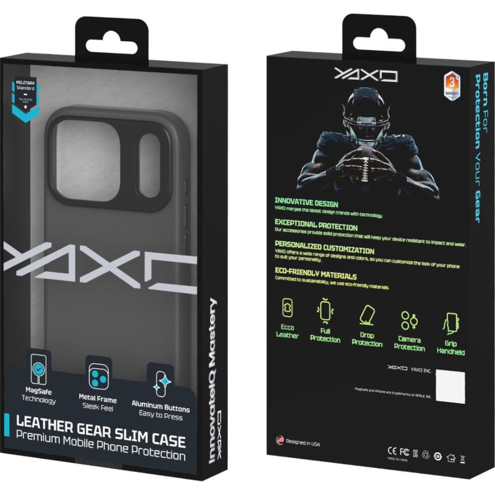 Etui YAXO Leather Gear Slim Case MagSafe do iPhone 17 Pro, szare