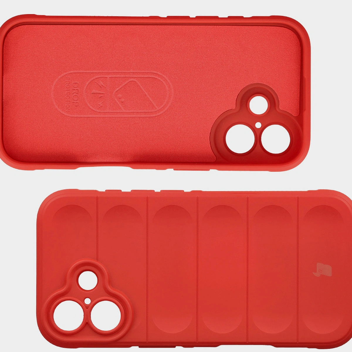 Przywodzące na myśl opony samochodowe, teksturowane boki, zapewniają lepszy chwyt, a gdyby urządzenie i tak upadło — tak jak kanapka, masłem w dół — to nie zderzy się bezpośrednio z podłogą, bo obudowa wystaje ponad krańce telefonu! Podwyższone krawędzie otaczają również wyspę aparatu, co w połączeniu z dedykowanymi wycięciami na soczewki stanowi solidną ochronę obiektywów.