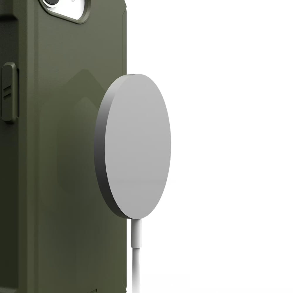 Ta obudowaposiada specjalny pierścień magnetyczny, który pozwala na kompatybilność ze wszelkimi akcesoriami z serii MagSafe. Dzięki temu pozwala ona zachować pełną funkcjonalność smartfona w zakresie ładowania bezprzewodowego (dotyczy modeli telefonów wyposażonych w tę funkcję), gdyż z wykorzystaniem magnetycznego mocowania Twoja ładowarka indukcyjna z MagSafe zawsze będzie przylegać do telefonu w prawidłowym miejscu