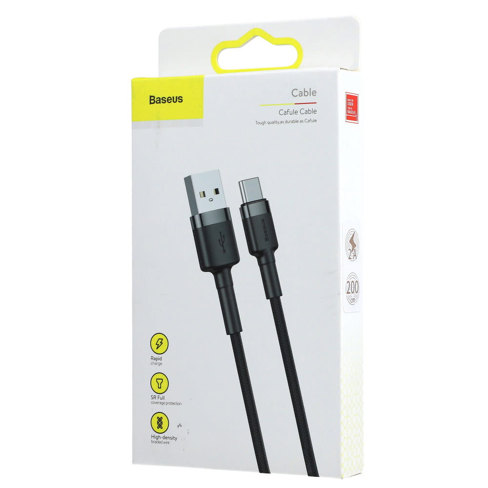 OUTLET: Kabel Baseus Cafule 2A USB-A do USB-C 2m, czarno-szary