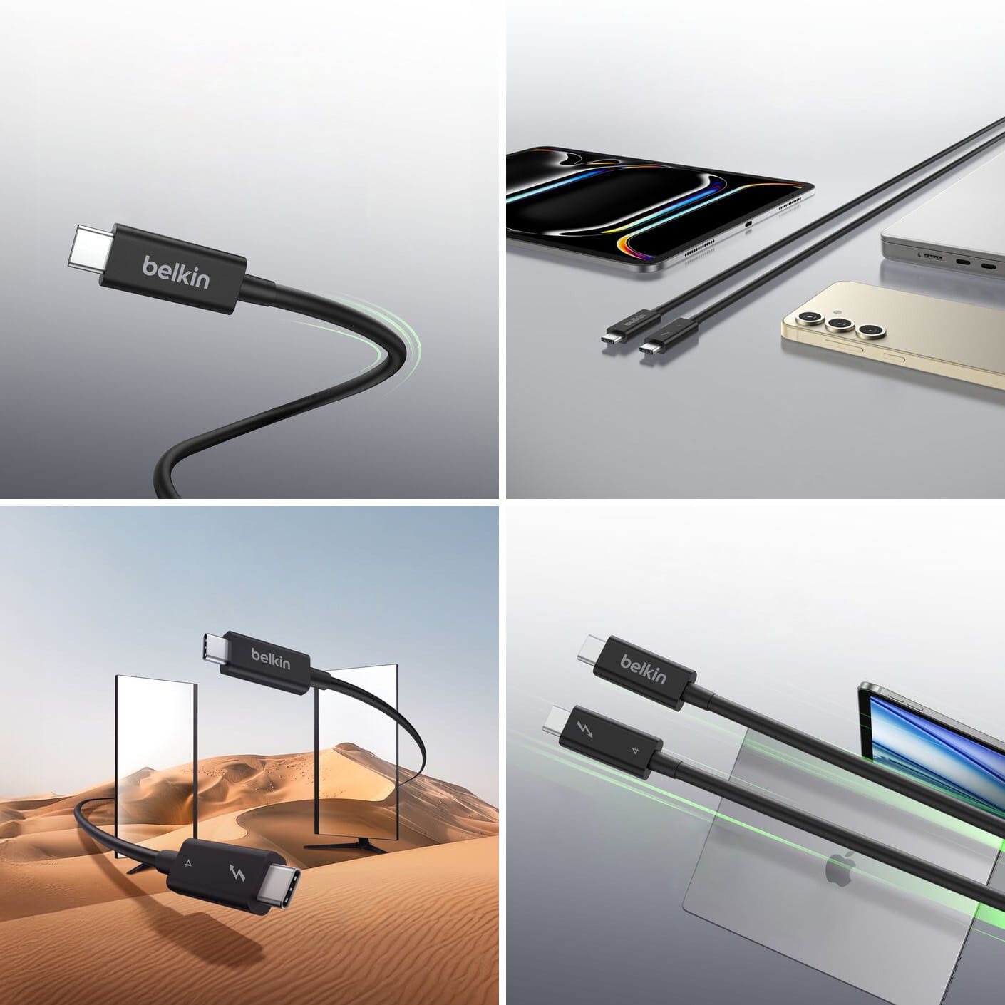 Oryginalny kabel ładujący i synchronizujący dane marki Belkin z serii Connect z certyfikacją Thunderbolt 4 i zgodnością z USB4, wykonany z solidnych materiałów o mocnych końcówkach.