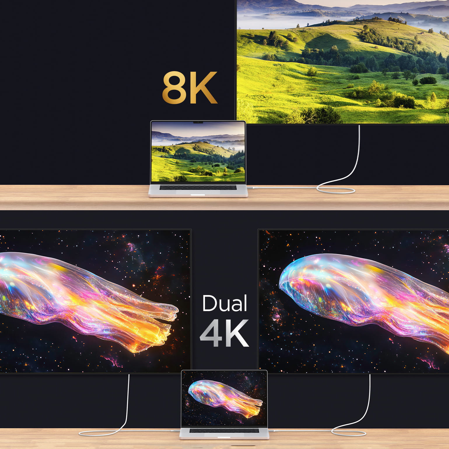 - pojedynczy wyświetlacz UHD 8K/60Hz,