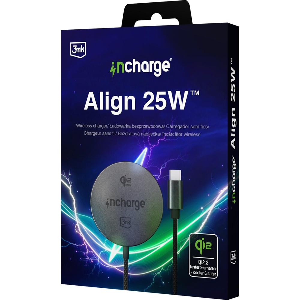 3mk incharge Align 25W for Android to nowoczesna ładowarka indukcyjna z wbudowanym przewodem USB-C, która wykorzystuje najnowszy standard Qi2.2 i oferuje przełomową moc 25W – jedną z najwyższych dostępnych wśród magnetycznych ładowarek bezprzewodowych dla urządzeń z Androidem.