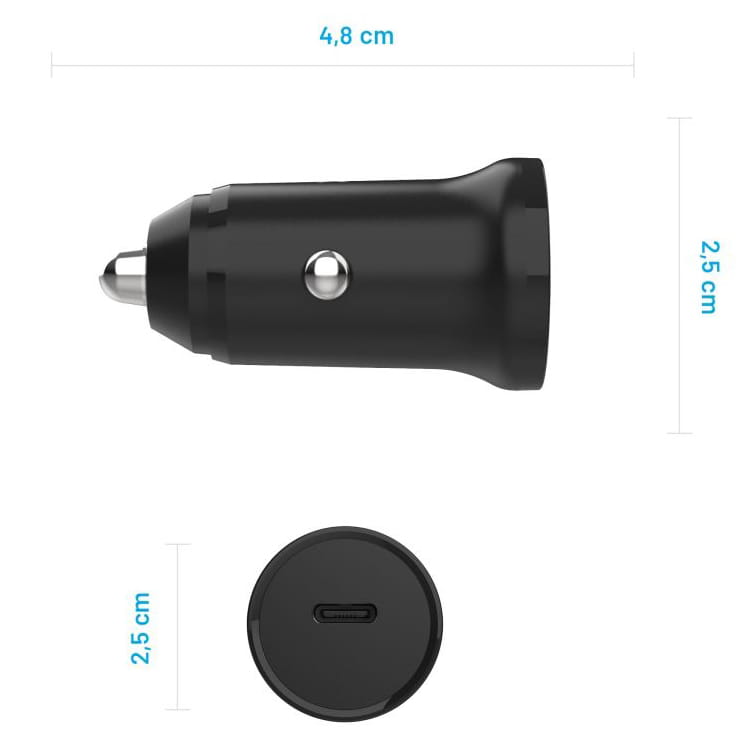 Niewielkie wymiary 4.8 x 2.5 cm sprawiają, że ładowarka dyskretnie wtapia się w deskę rozdzielczą i nie przeszkadza w obsłudze innych elementów kokpitu.